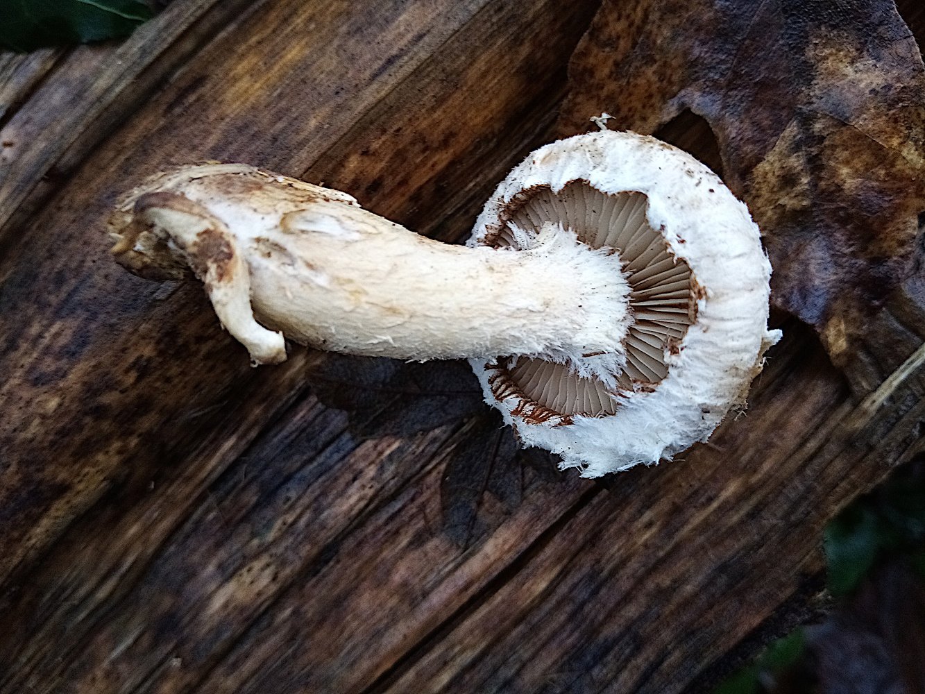 Je n'avais jamais vu cette espèce, trouvée à 2 m de l'endroit où poussait Leucoagaricus ionidicolor, sur du bois entreposé.