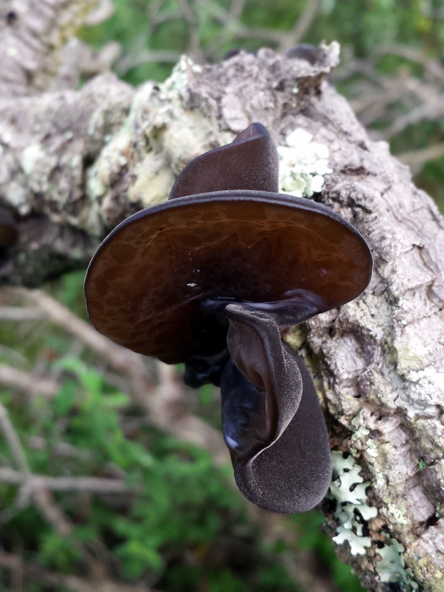 L'habitat et l'aspect des champignons ci-dessus laissent à penser qu'il s'agit très probablement de la nouvelle espèce quercicole Auricularia cerrina, publiée en 2022 (voir ce sujet).