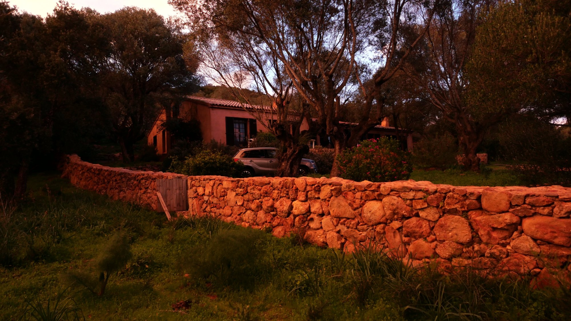 Ça nous arrive assez souvent en Corse. Photo du 2 février 2020, certes le soleil se couchait mais il n'y avait ni orage ni tempête ni incendie, juste de l'air très chaud et des nuages colorés : Et le granite de ce mur est bien un peu rosé mais je vous assure que ce n'est pas sa couleur habituelle. Photo non retouchée. Jplm
