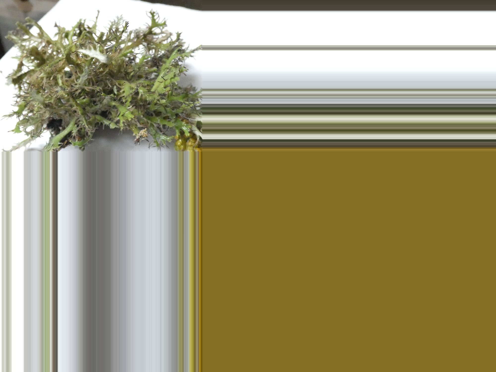 Et si j'ai bien compris, tu avais juste posé le thalle sur une feuille de papier pour la photo, il n'avait poussé sur aucun élément domestique en alu ou en PVC ? C'est plus cohérent avec la préférence d'A. ciliaris pour l'air vraiment pur !