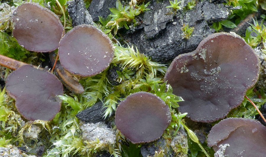 Octospora hetieri (= Neottiella hetieri), qui ne pousse pas sur place à feu à proprement parler mais sur les funaires.