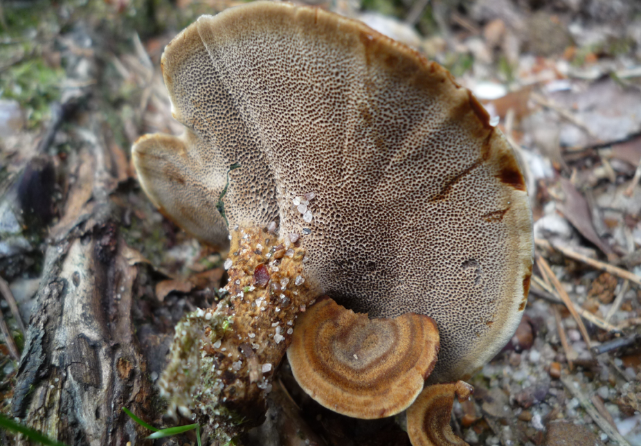 Voici Coltricia perennis, une espèce non spécifique des places à feux mais qui les apprécie particulièrement.
