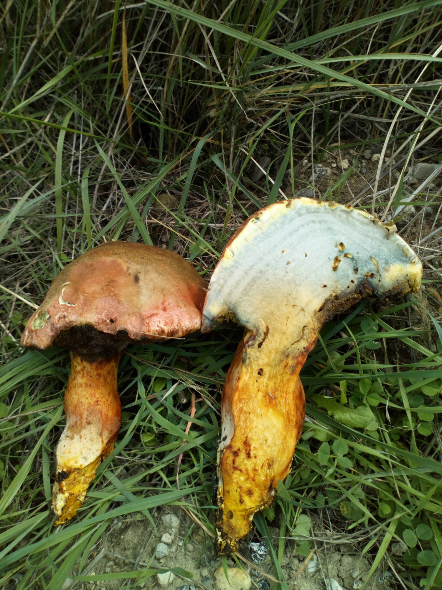 C'est donc bien Rheubarbariboletus persicolor, qui comme le dit Galli, semble être une spécialisation sur sol calcaire de R. armeniacus, avec qui il partage sa caractéristique frappante d'avoir la chair orangée parfois assez vif en bas du stipe (parfois assez haut).