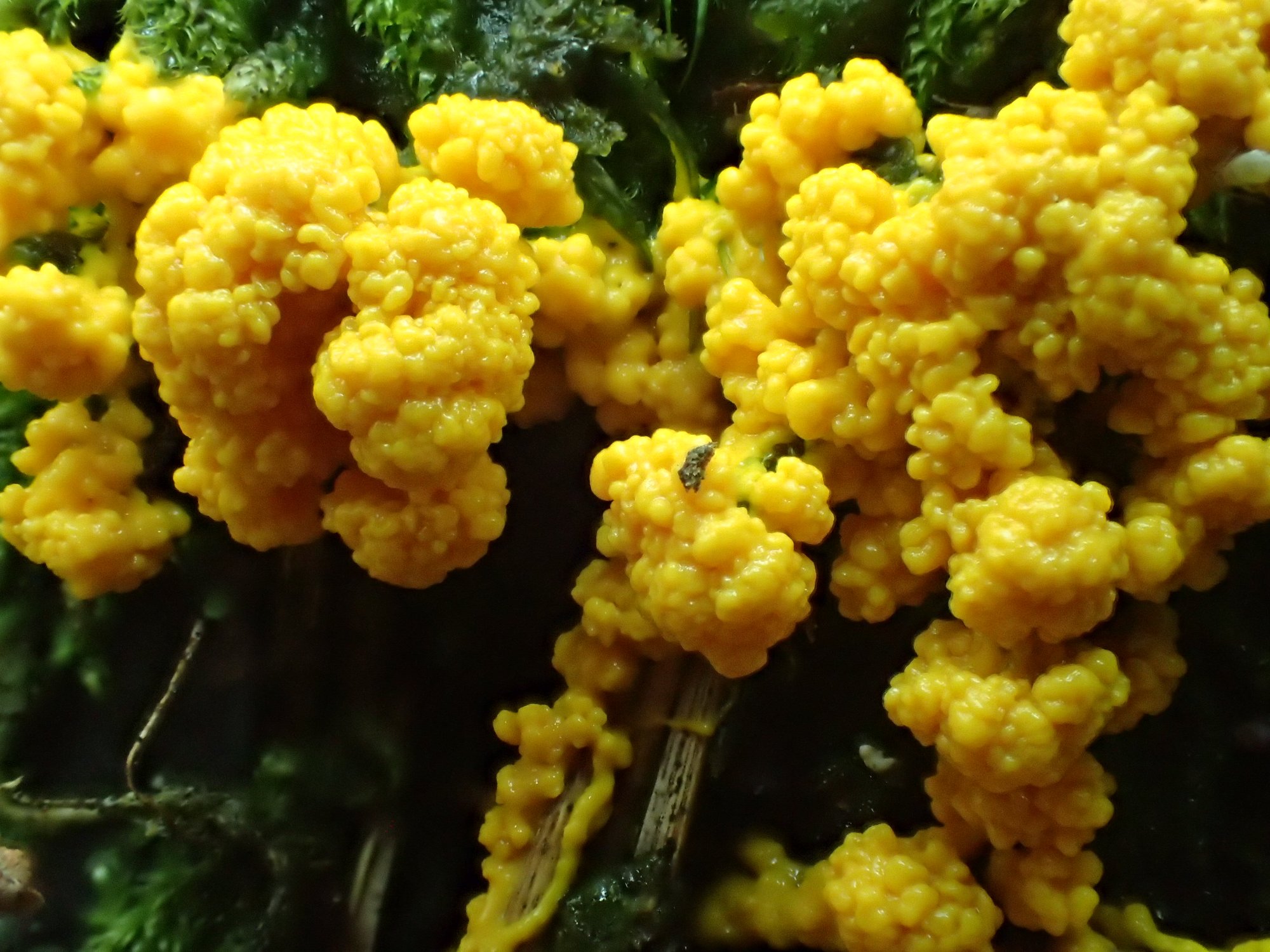 J'ai moi-même douté, peut-être à tort, de Leocarpus fragilis mais c'est pas pour dire, il n'a pas un plasmode seulement jaune d'or mais, comme Jean-Pierre le sait, jaune puis rouge orangé puis brun, voir la galerie.