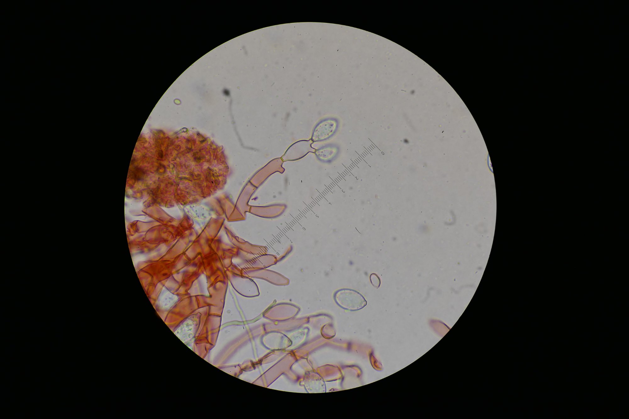 Pour la micro, j'ai avancé effectivement. Il fallait aller regarder dans les parties plus claires (=moins matures) pour ne pas détacher qu'un amas de mitospores.