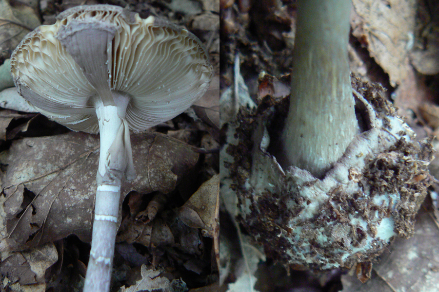Une amanite grise, je pensais à une A.vaginata ou proche, mais voilà... Le reste de voile gris m'intrigue et je ne sais plus où chercher...