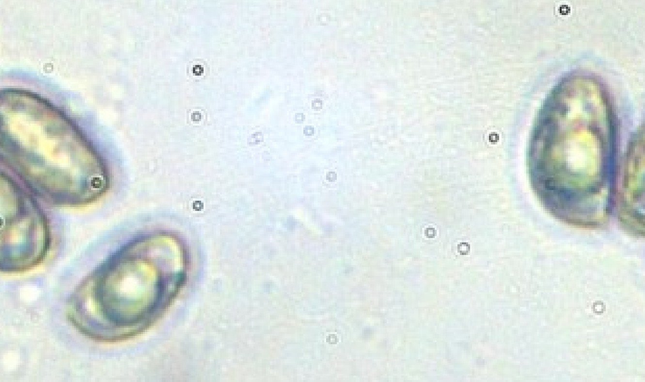 Spores : 8-10 X 4.5-6 ovoïdes à éliptique.