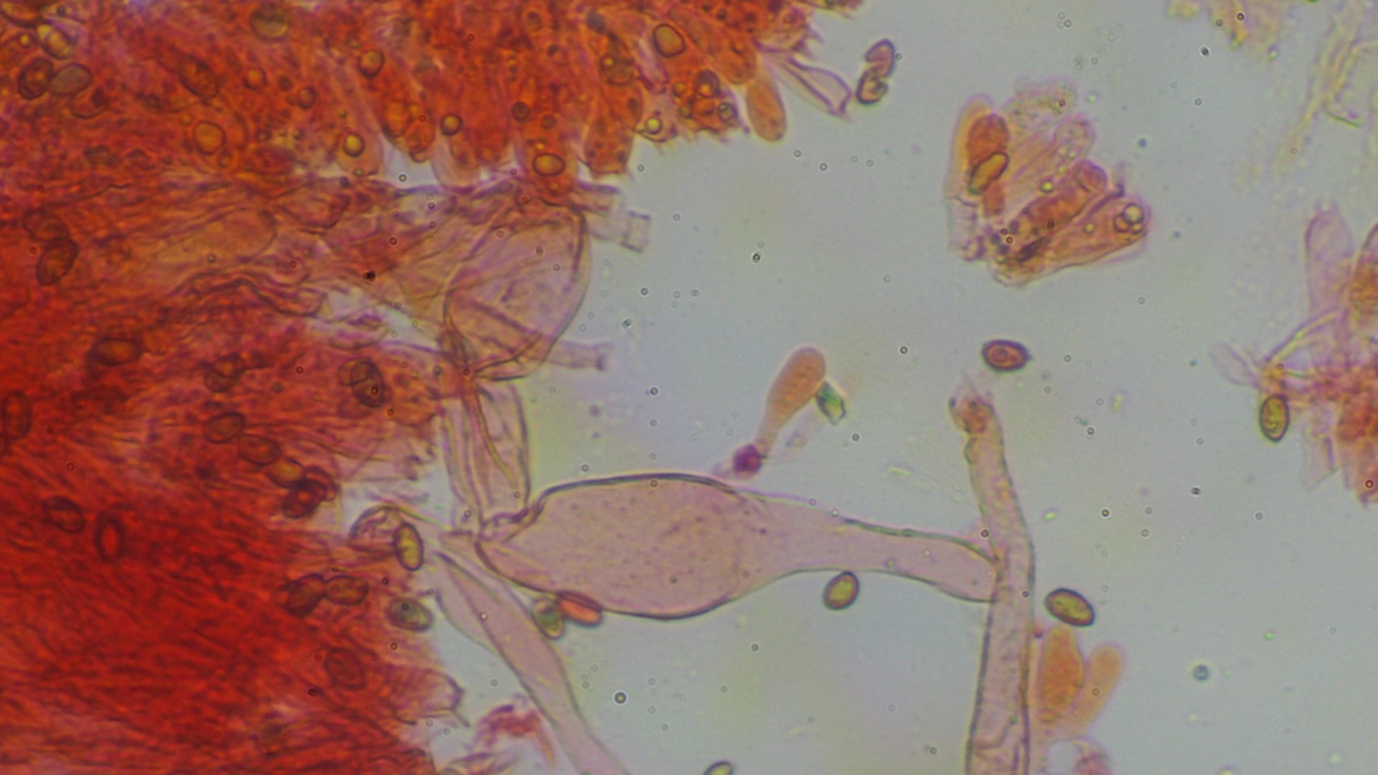 Concernant les éléments du champignon... Je vois des basides, des basidioles et des cystides (+ ou - différenciées).