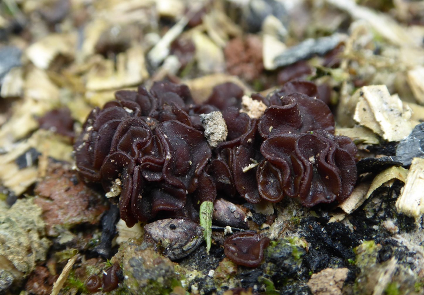 Les places à feu, dont je vous avez parlé en ce début d'année commencent à se peupler d'hôtes variés. En voici un premier, un asco, qui forment des amas d'individus plus ou moins importants. Tous ont été photographiés sur la même place à feu, mais je me demande si deux espèces ne seraient pas en mélange.