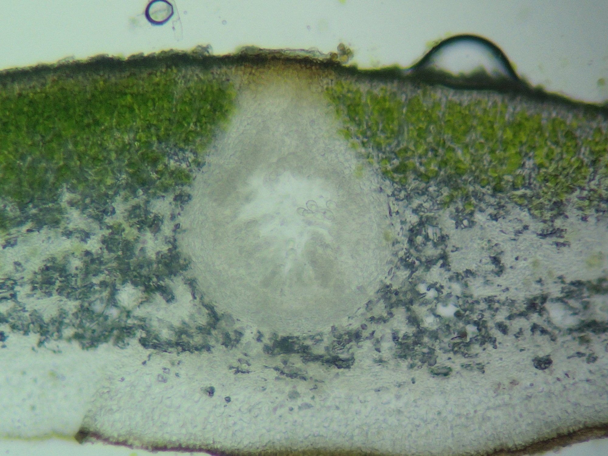 TheJC, la demi-boule noire à côté de l'ouverture du périthèce, c'est une bulle d'air. Mais j'aimerais bien savoir pourquoi il y a du gris dans la médulle : air emprisonné itou ?