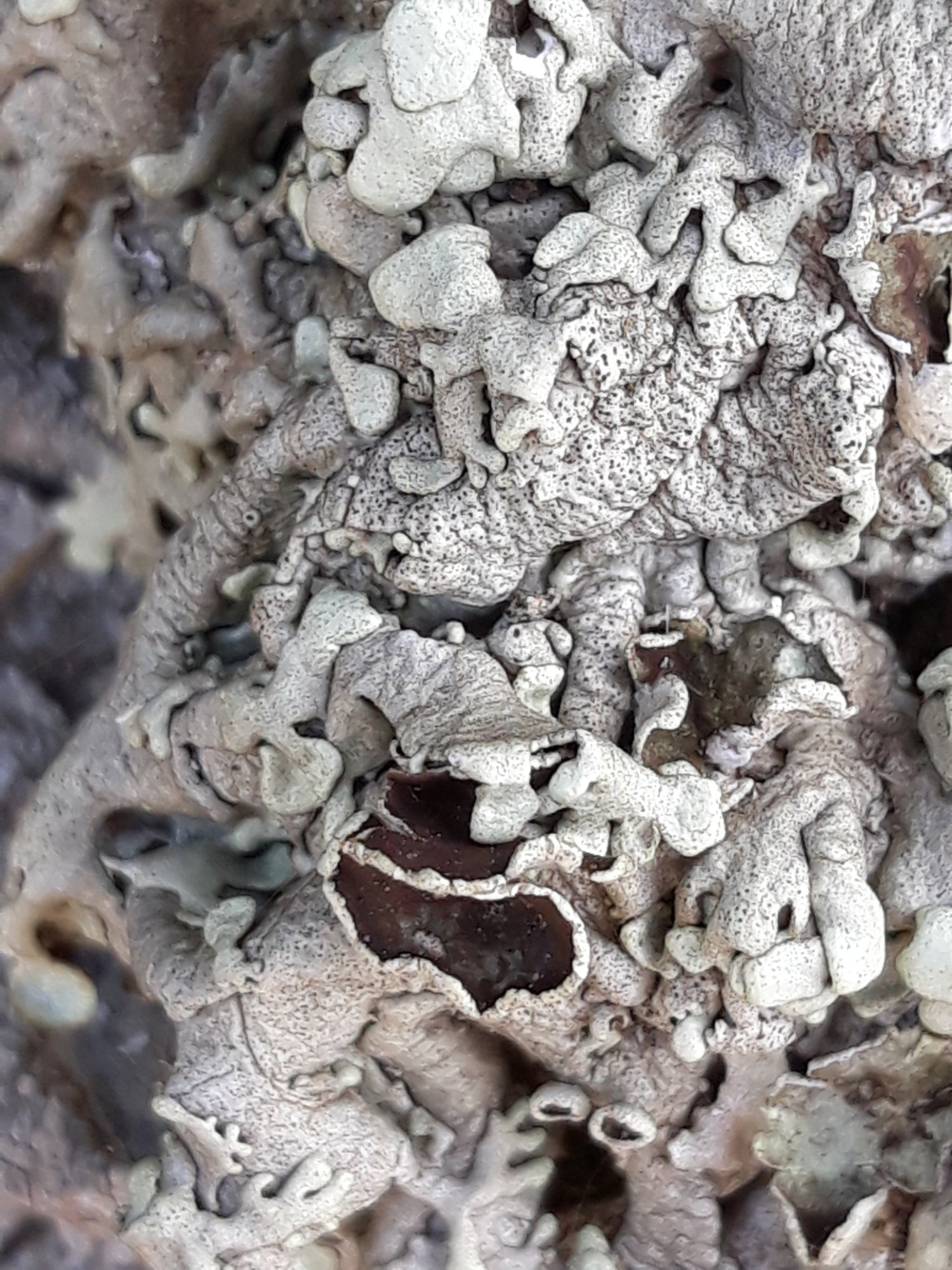 Chez les Xanthoparmelia je connais surtout X. pulla et X. conspersa, qui sont très banales sur le dessus des petits murs, à Limoges, et je sais qu'on peut confondre X. stenophylla avec X. conspersa quand cette dernière ne s'est pas encore couverte d'isidies vert tendre, mais c'est tout.