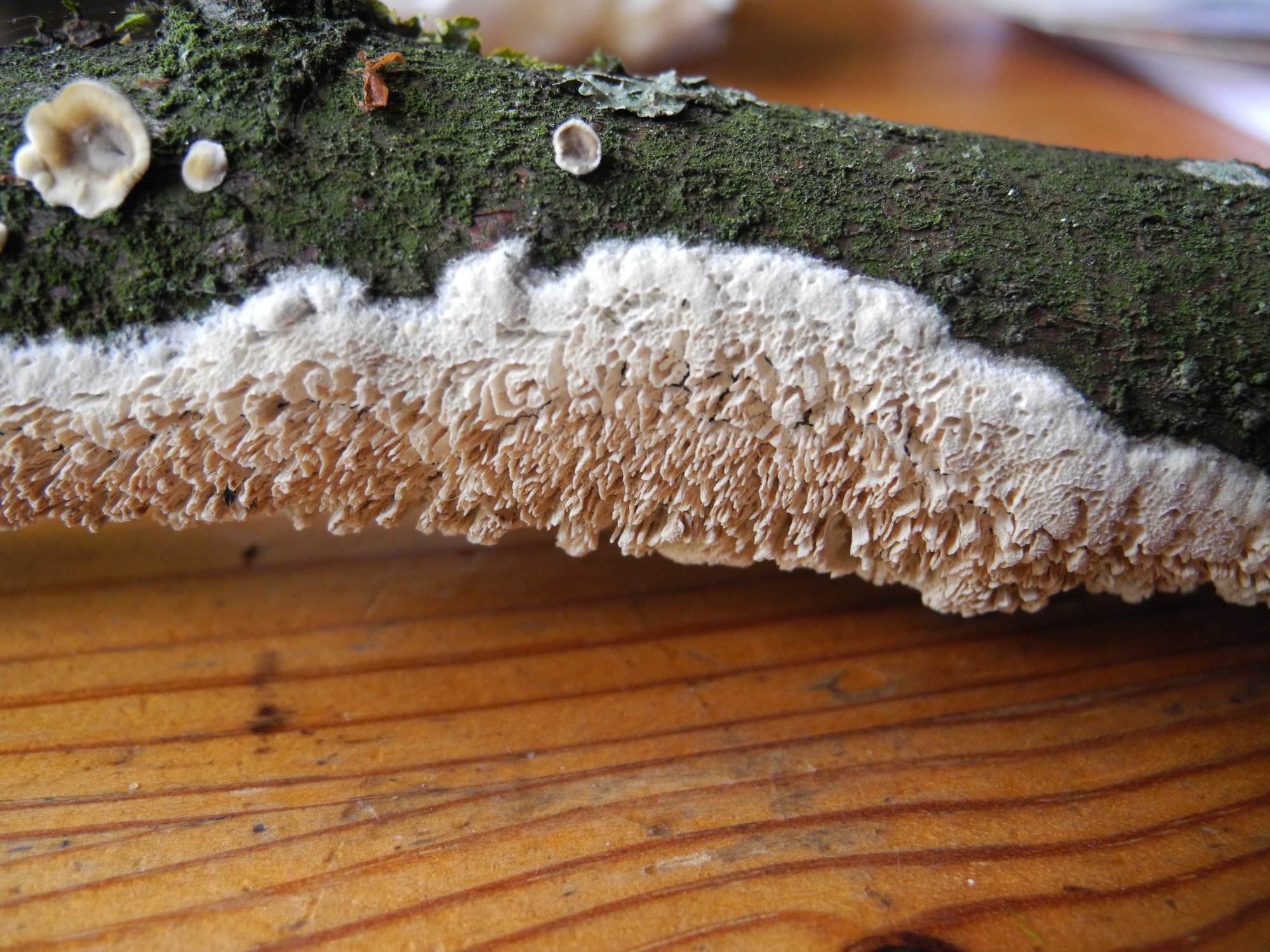 Ici je suis un peu d'accord avec Fouad sur l'absence d'aspect "croûte" mais en même temps la piste Schizopora ne m'excite pas. Peut-être un renommage en Schizoporaceae irait mieux mais ça n'englobe sans doute pas tous les genres dentus.