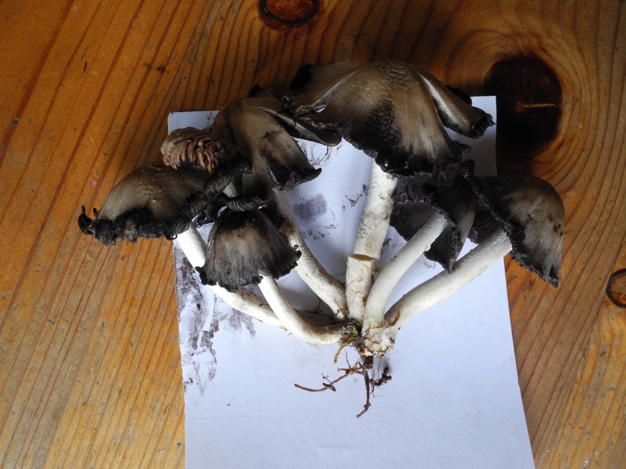 En tout cas je vous présente mes excuses le plus confuses : la chair de mes coprins devient effectivement déliquescente, il fallait juste attendre une nuit de plus. De certains chapeaux il ne reste plus qu'une trace noirâtre, ce matin