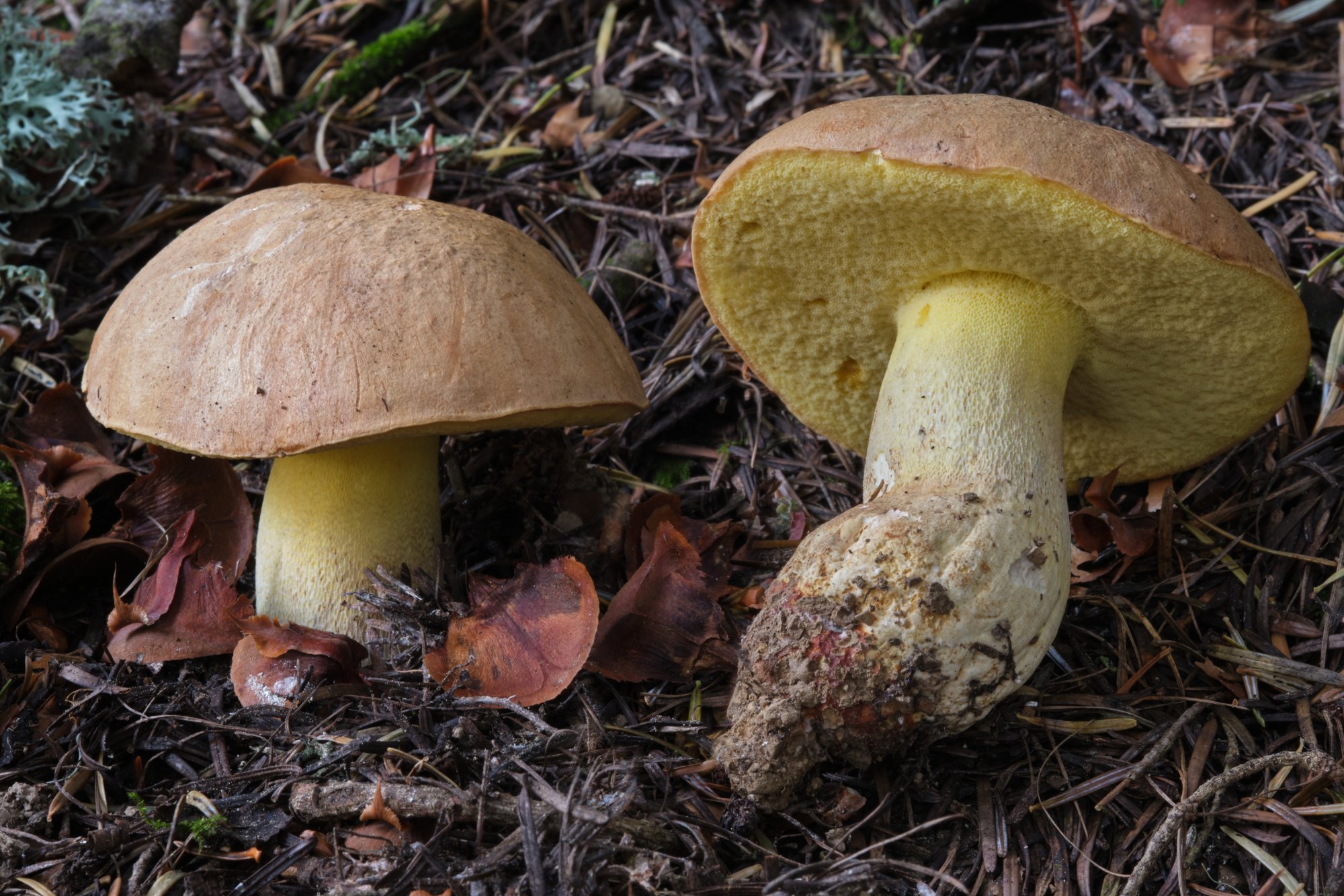 Pour répondre à Ghislaine, je prends les photos avec un objectif 60mm qui m'impose pas mal ce recul par rapport aux champignons, surtout quand ils sont gros. Résultat, faire une photo avec trois gros bolets est un peu plus compliqué qu'avec une autre focale. J'ai donc privilégié deux éléments plutôt que trois. Mais j'ai aussi un cliché équivalent avec la coupe, de mémoire. Je regarde ça dès que possible et je l'ajoute.