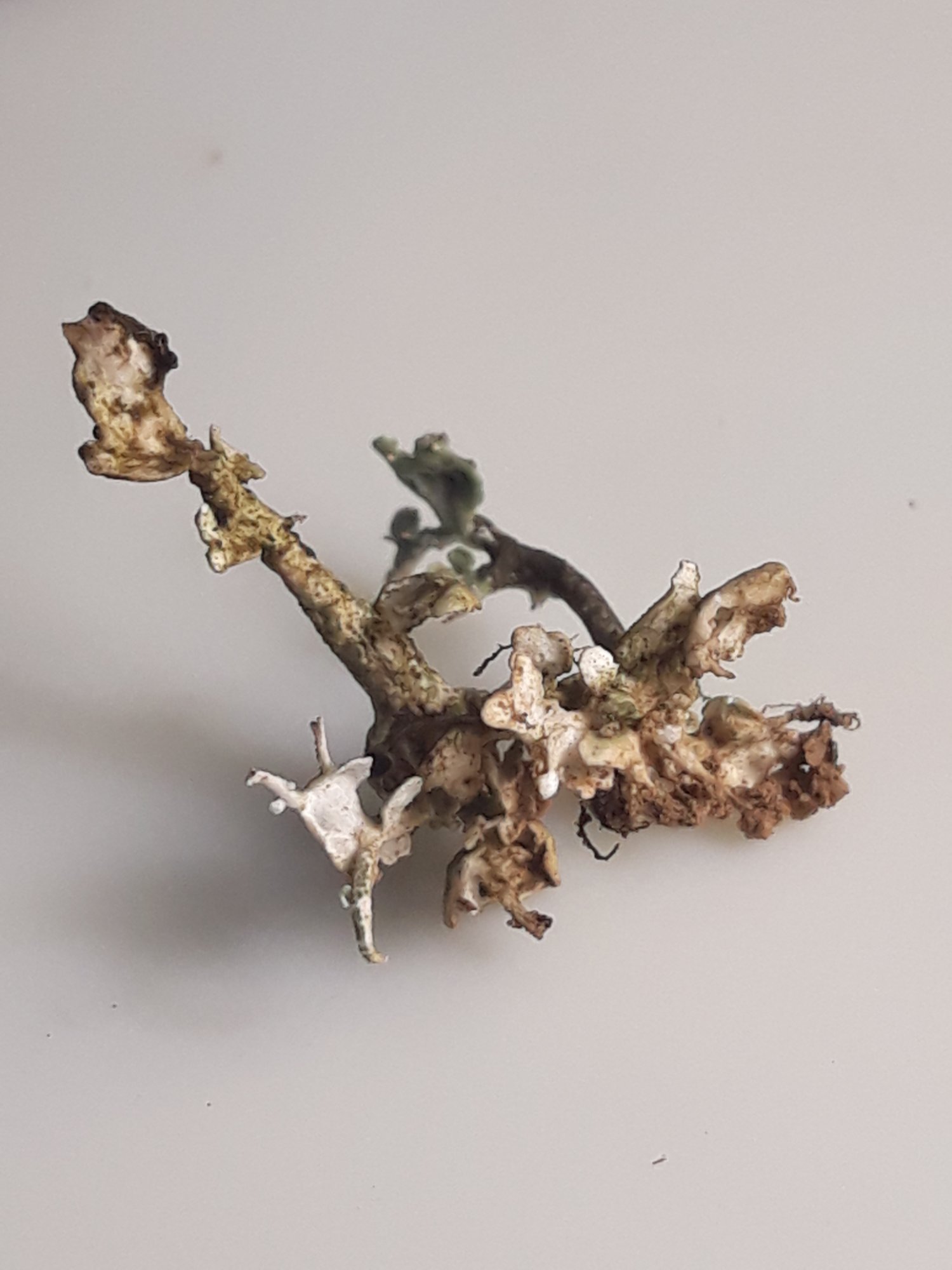 La première photo est Cladonia furcata morpho. palamea. Surface bien ridée. P+ rouge et K+ jaunâtre.