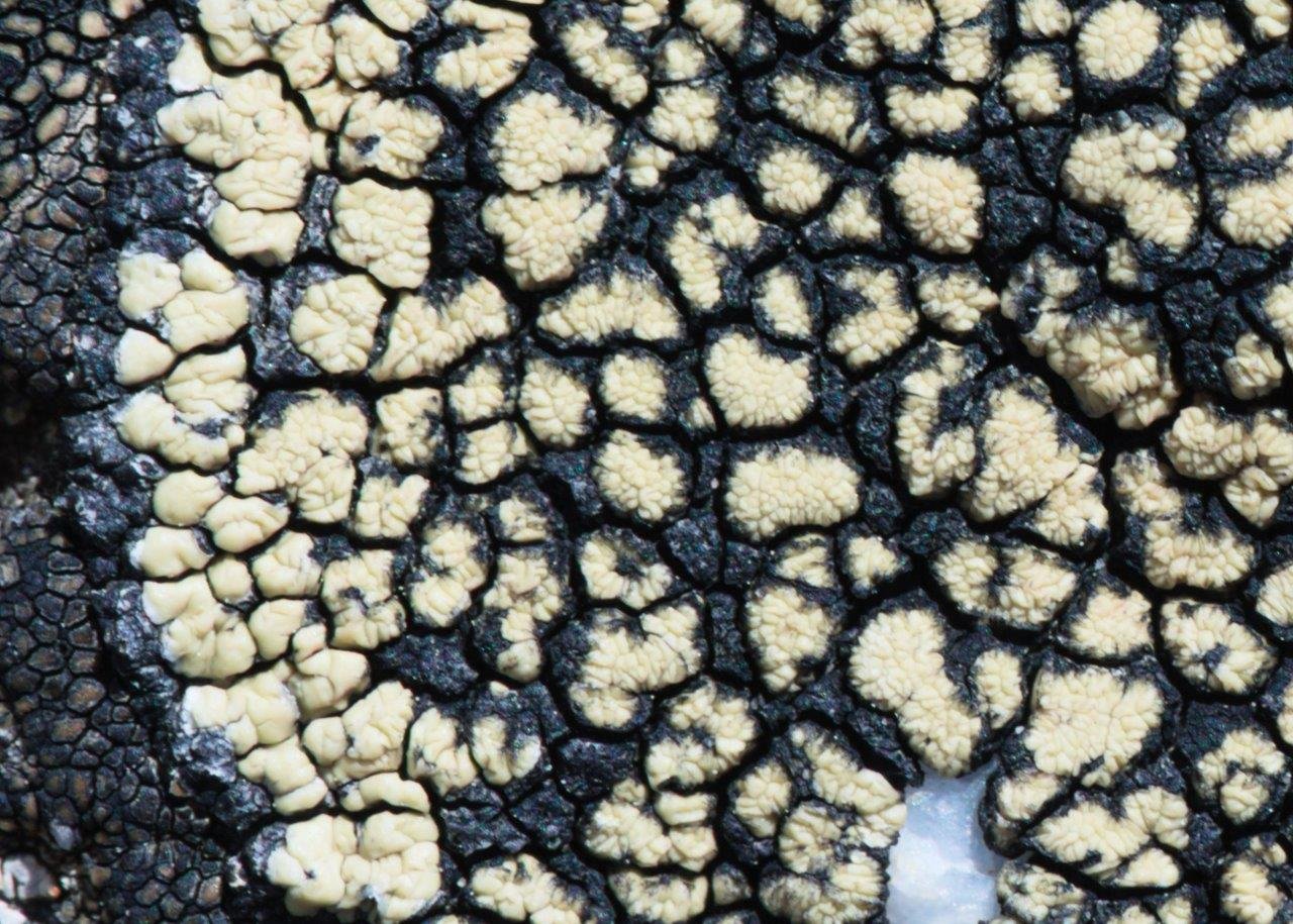 Voir aussi du côté de R. geographicum médulle P+ jaune et les apothécies situées entre les aréoles.