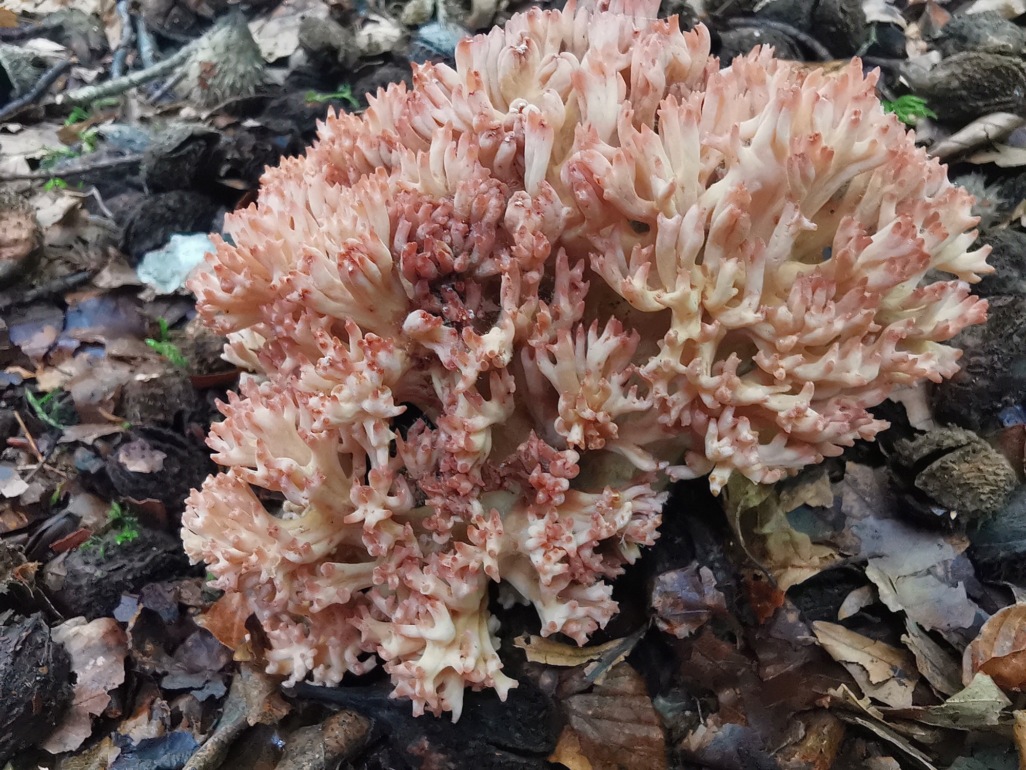 Moi on m'a dit que les clavaires/ramaires ne pouvaient pas se déterminer sans micro, cette espèce doit alors faire exception. Vous semblez aller vers Ramaria botrytis, pourquoi pas, mais j'en vois d'autres dans le cahier 6 de la FMBDS qui iraient tout aussi bien.