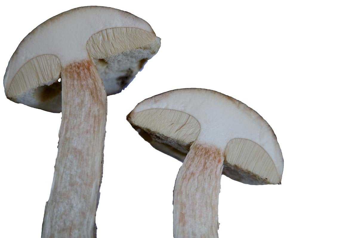 stipe plutôt grisonnant (mèchules peu prononcées vers le haut), coupe rougissante rapidement mais de manière fugace : au bout de 2 h le rougissement a disparu,