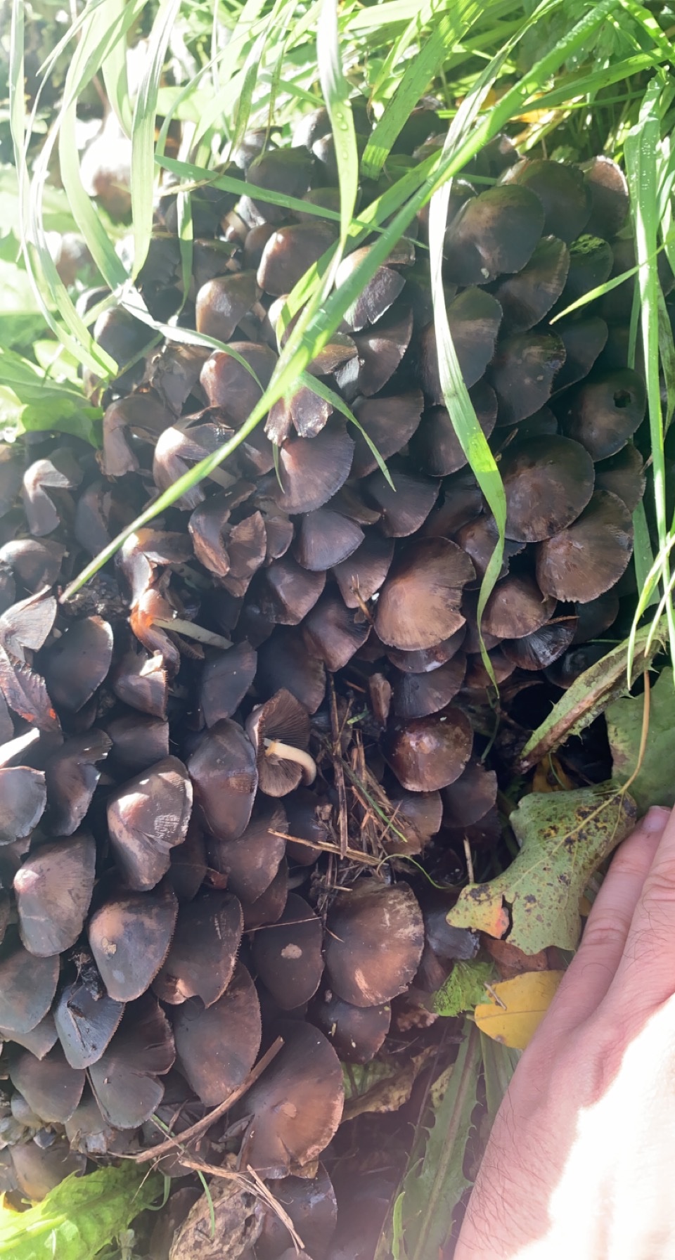 Je me baladais dans un park pour trouver des marasmes des oréades de fin de saison quand je tombe sur ce type de champignons qui me semble pas être des Marasmes des oréades ..