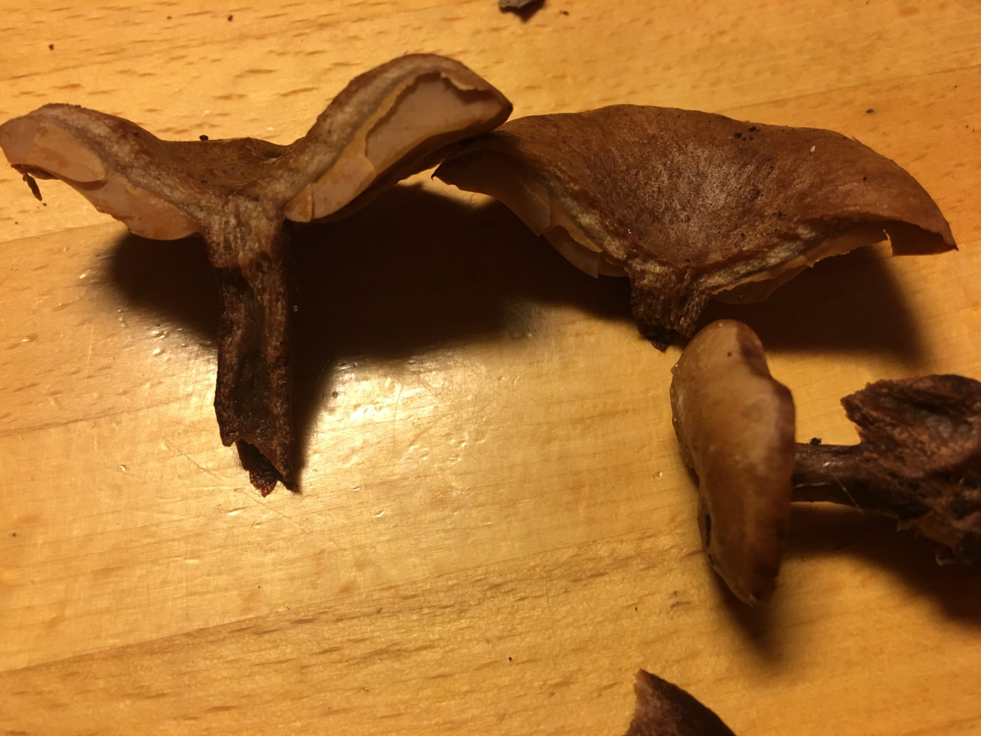 Difficile pour moi d'y voir un Pseudoclitocybe. Marron??? La lumière est horrible, mais ça ne me paraît pas être ça. On est sûr que c'est fibreux ?