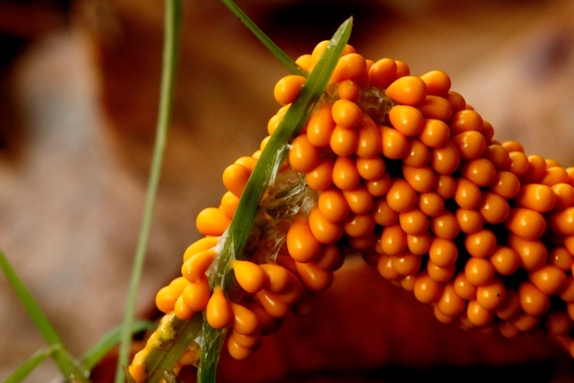 Cette grappe de sporocarpes de couleur jaune d'oeuf et de forme oblongue me font penser à Leocarpus fragilis dans sa forme immature.