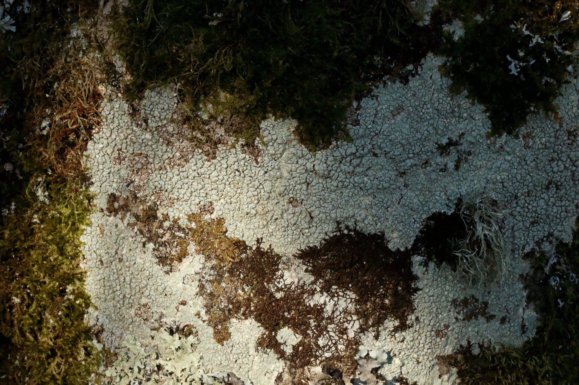 30 janv. 2022, 16:12Cécile a écrit :C'était bien ça qu'il fallait regarder, surement un champignon lichénicole.30 janv. 2022, 16:00Arnaud D. a écrit : Petite devinette, vous n'avez pas remarqué quelque chose d'étrange sur ce Pertusaria ?heuuuu ... comme ça, pour participer : la couleur brun-rouge qui envahit un peu le thalle ? Elle ressemble à la couleur de la Frullania sp qui, elle aussi, a l'air de vouloir coloniser ce pauvre lichen ...