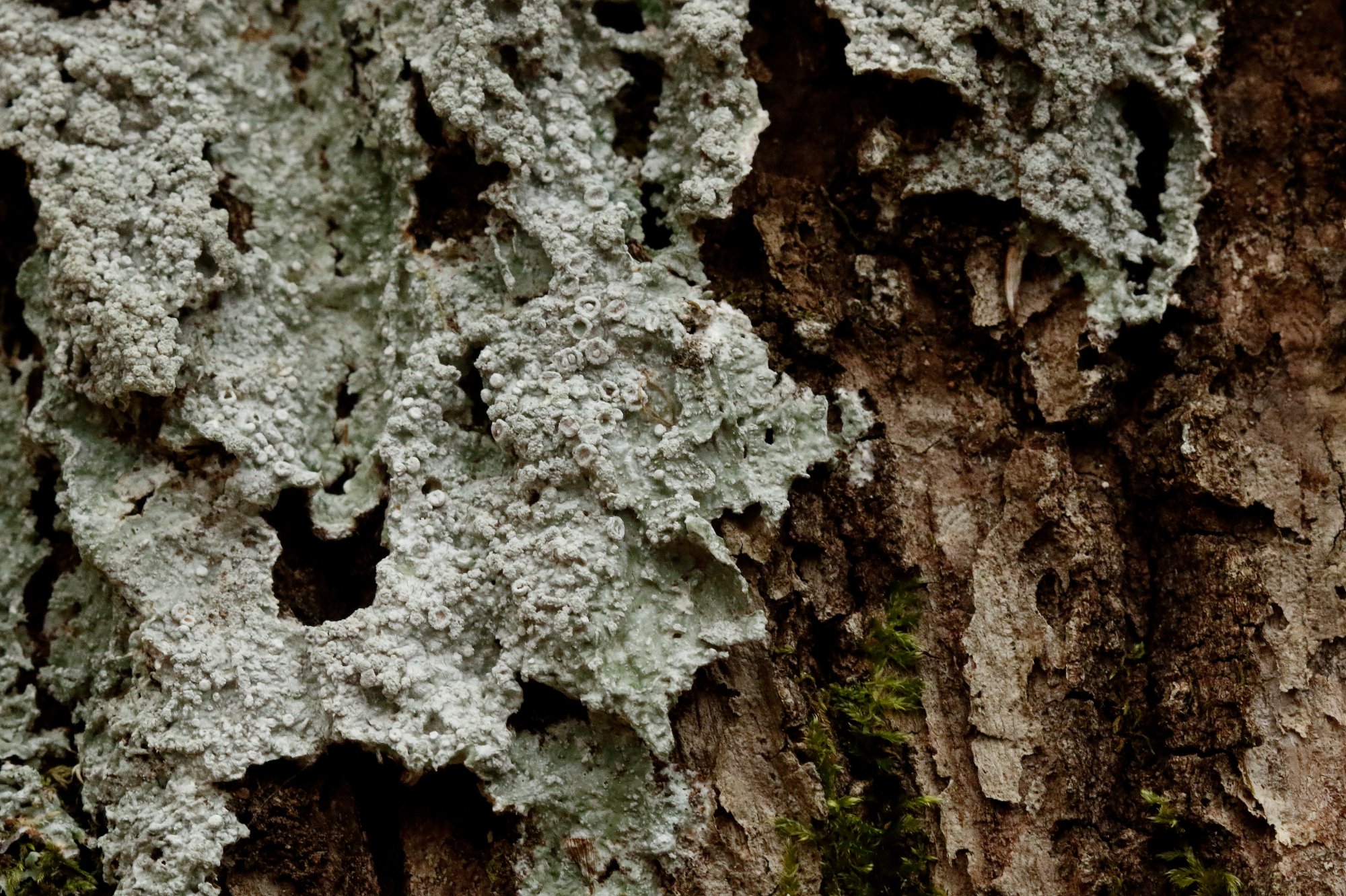 07 févr. 2022, 23:24Cécile a écrit : Quel bazar ! Il y a des soralies, tantôt arrondies (photo 2), tantôt applaties (photo3) et des apothécies (photo 4).Il s'agit surement des soralies de Lepra amara qui s'érodent et qui deviennent plus ou moins plates.