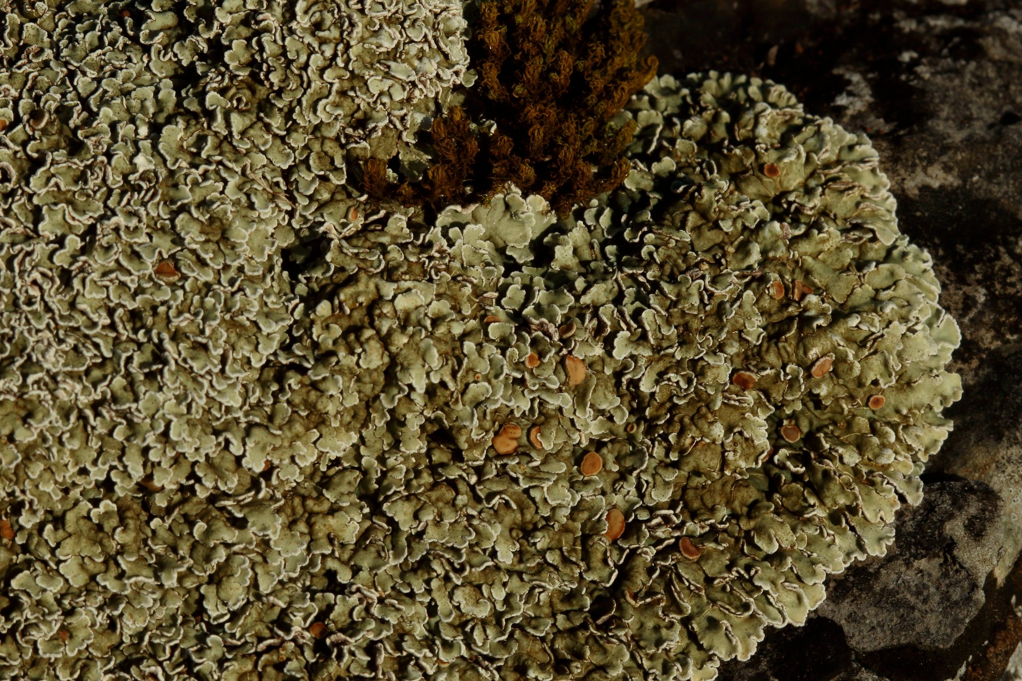 Bonjour, je pense comme Cécile à Squamarina cartilaginea parce que les lobes marginaux de S. stella-petraea sont étroitement étalés sur le substrat sans se chevaucher, tandis que chez S. cartilaginea, les lobes périphériques sont moins étroitement appliqués sur le substrat et plus ou moins imbriqués, ce qui me semble être le cas ici.