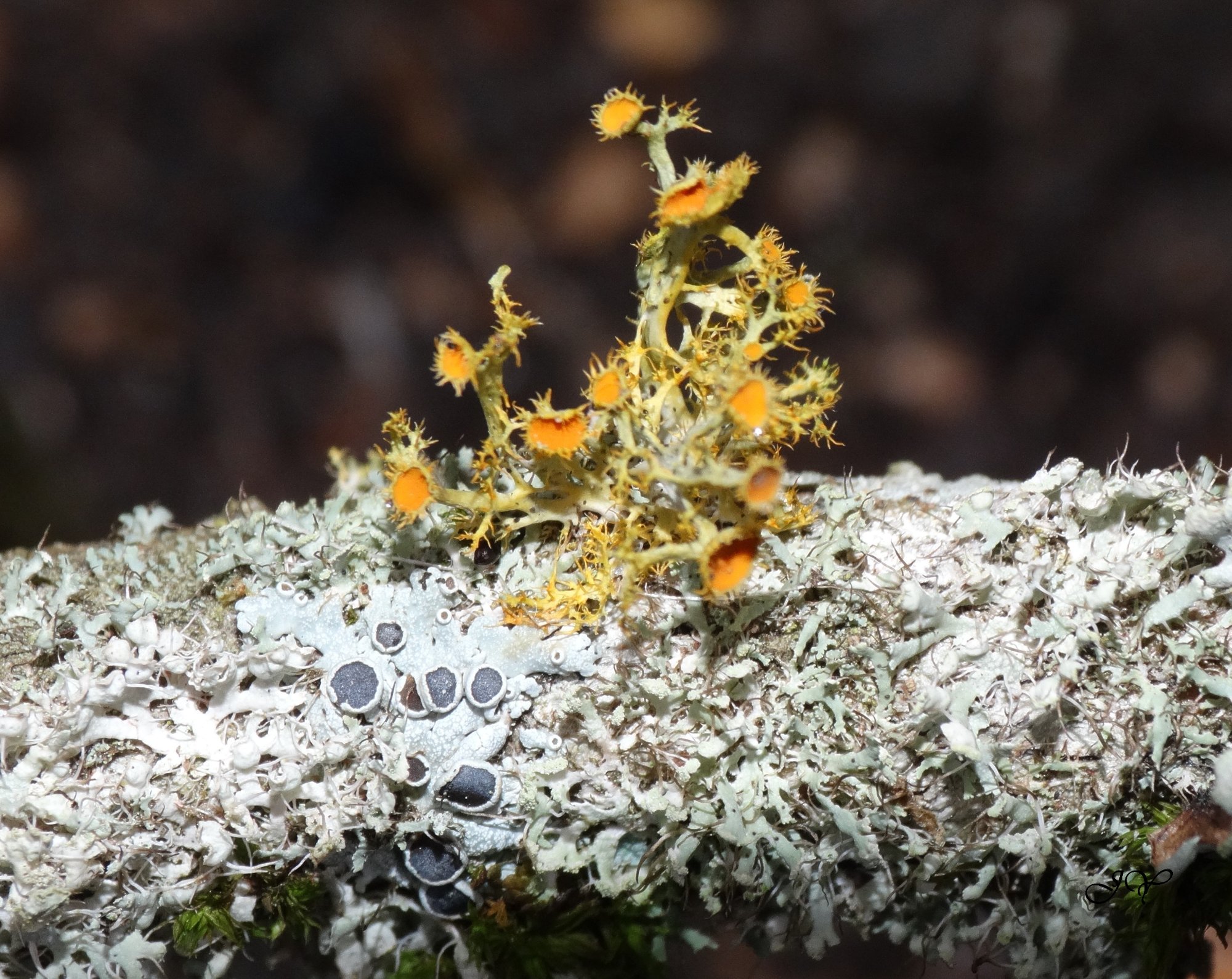 Parce que, oui bien sûr, Jeanine, tu nous fais admirer ici un très beau spécimen de Teloschistes chrysophtalmus.