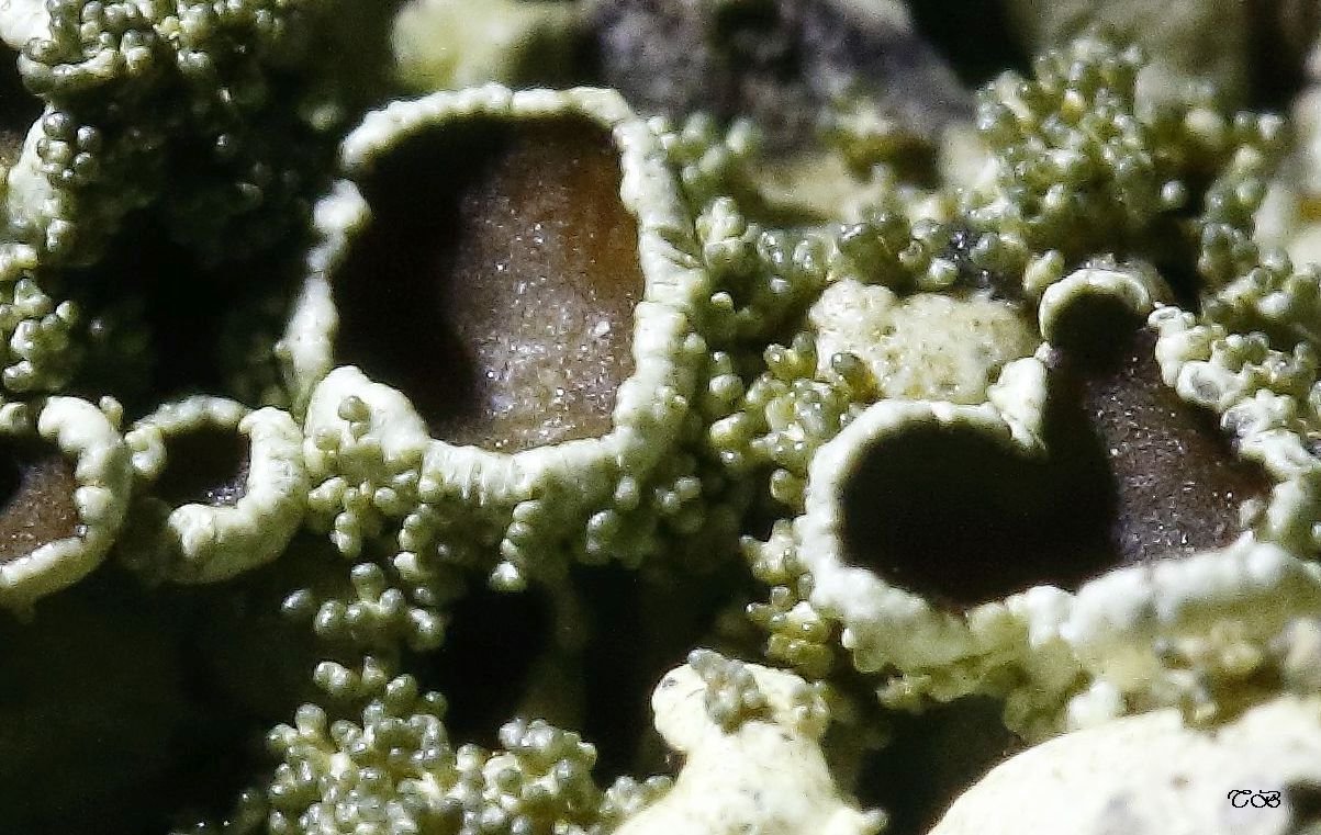 Sur des gros plans et sur des thalles observés plus matures, j'en ai conclu à des isidies plutôt cylindriques et ramifiées.