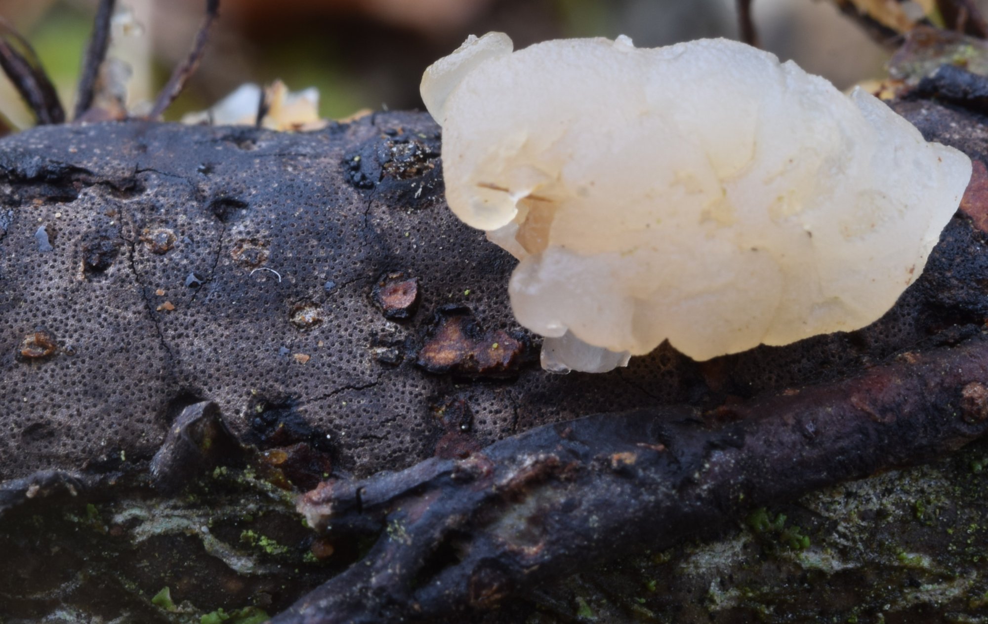 Il s'agit en effet de Tremella indecorata, jamais déterminée ici. Espèce rarement répertoriée (aucune récolte auvergnate à ce jour et une seule en Auvergne Rhône-Alpes) car disparaissant facilement en séchant. J'ai eu un coup de bol après les dernières pluies.