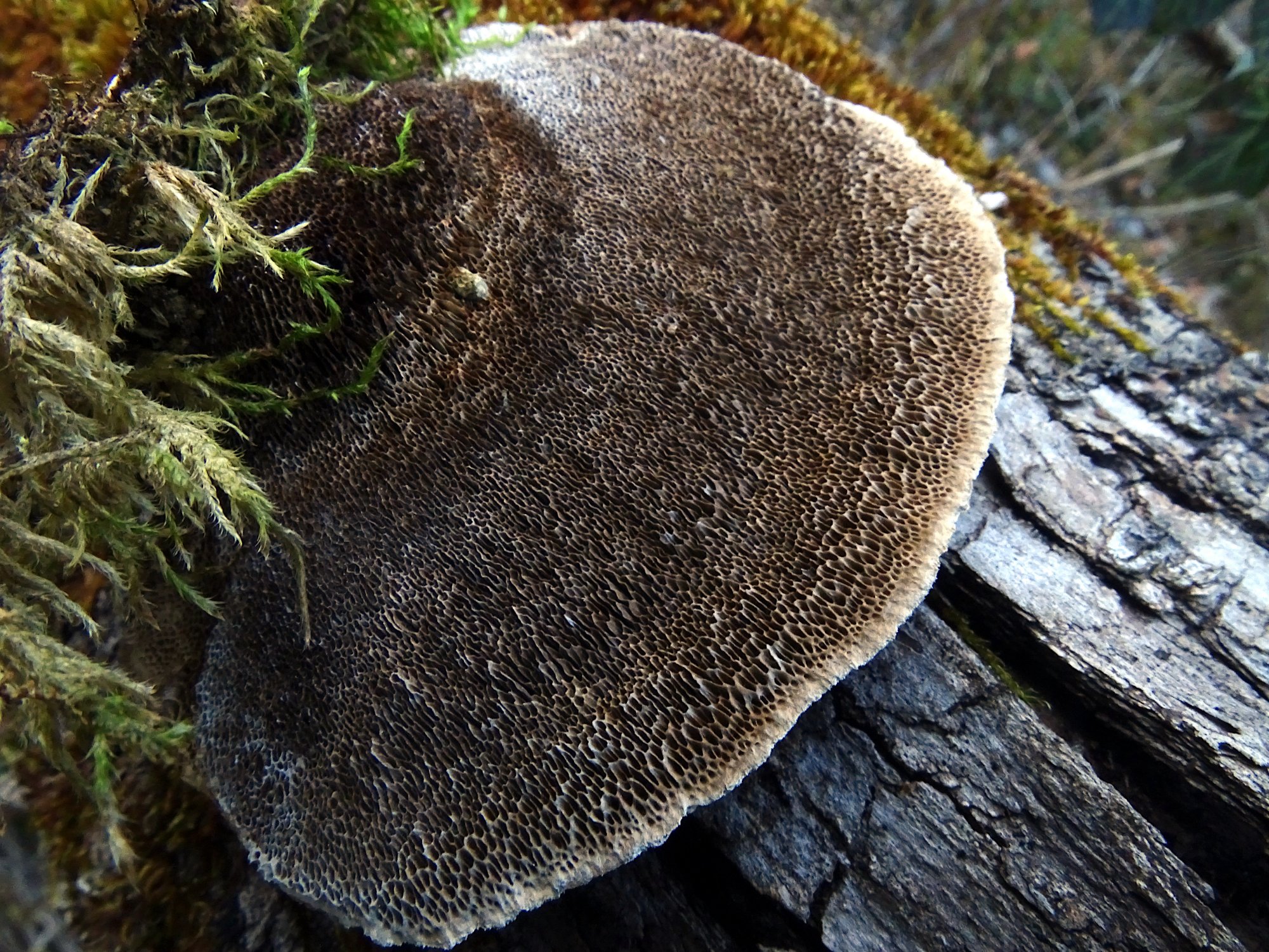 Cerrena unicolor : pores très irréguliers, déchirés et irpicoïdes, plus serrés ( 2 à 4 par mm). Je reste là dessus.