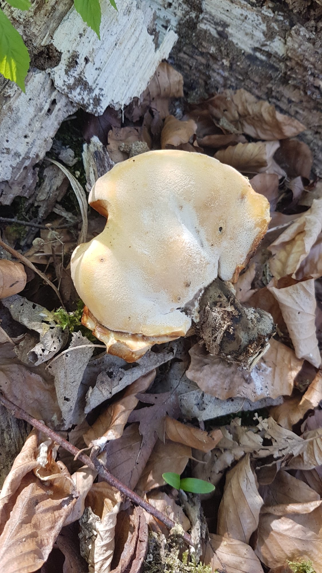 Pour moi, ce n'est certainement pas Piptoporus betulinus, pas l'allure, pas les couleurs, trop peu charnu et, surtout, selon toi, il n'y a pas de bouleau...