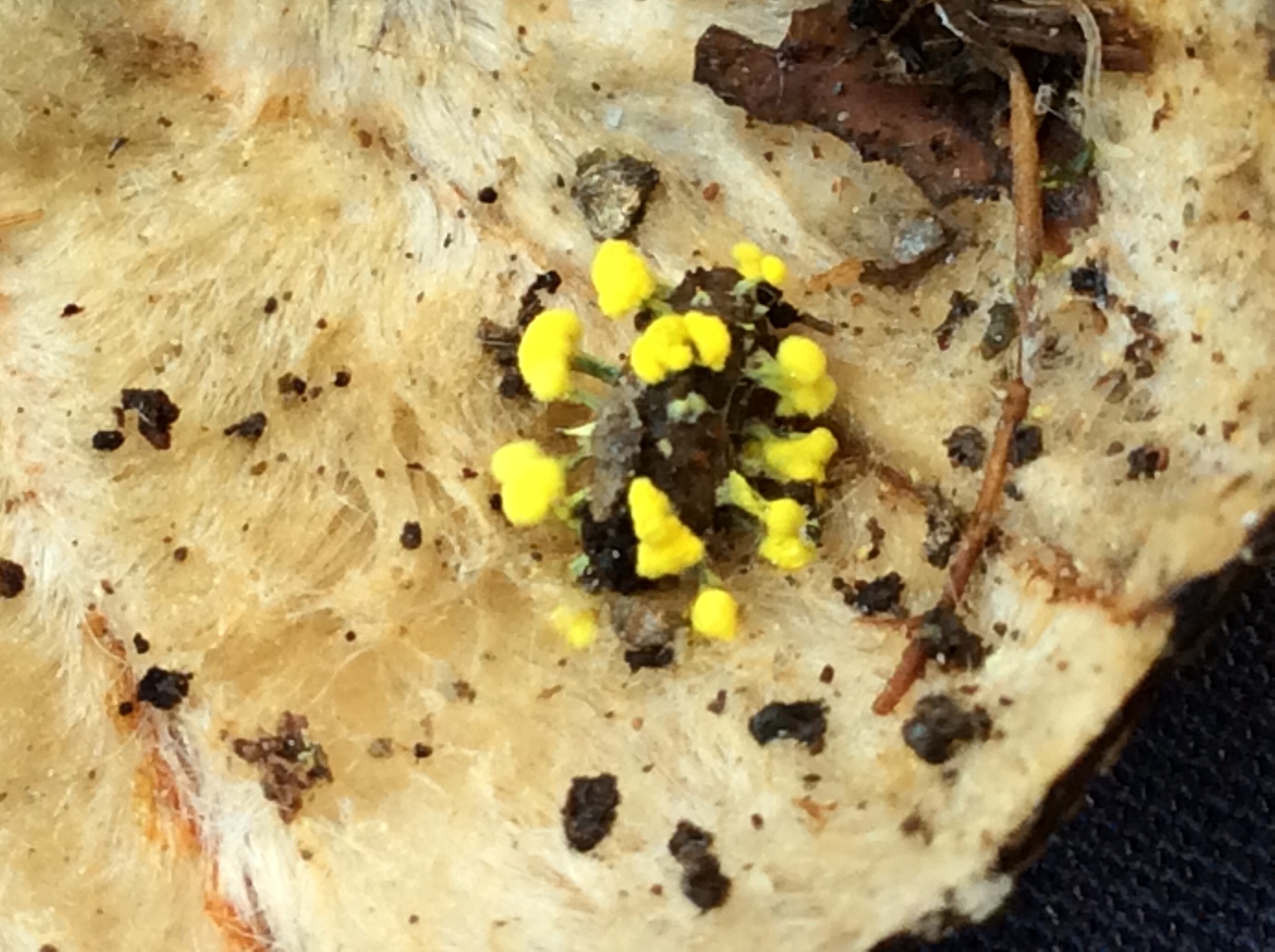 Pas sûr que ça soit un myxomycète... Je regarderai du côté des champignons entomophages. Il faudrait montrer ça à Rémi Péan sur MycoDB.