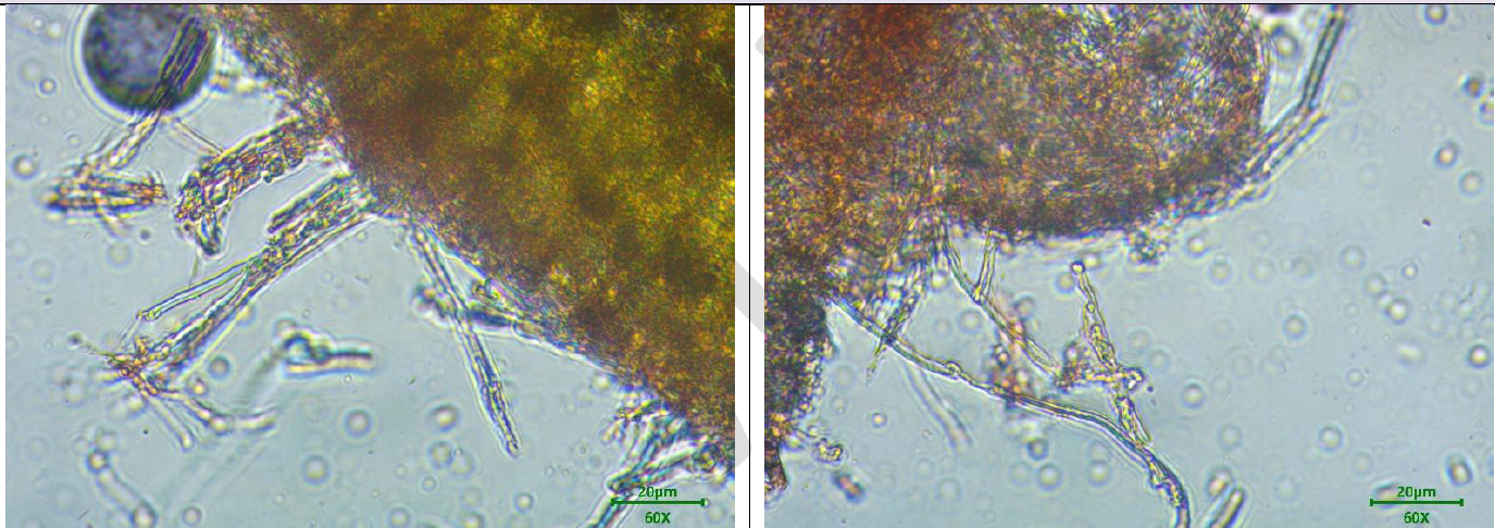 analyse microscopique d'une partie de mycélium, sans élément caractéristique observable