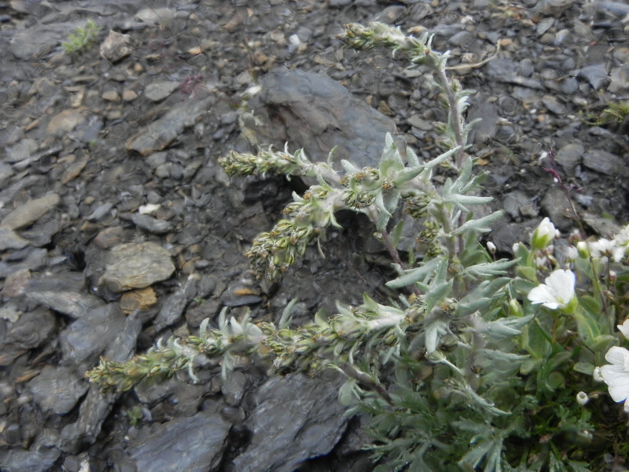 Mais... ce n'est pas Artemisia genepi que je présente. Artemisia genepi a des fleurs en épis, et penchées effectivement, comme ici :