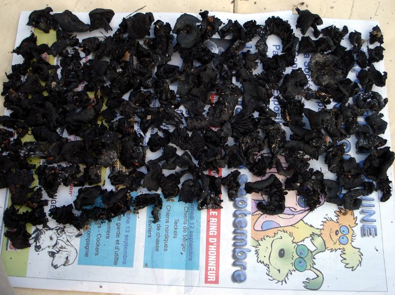 Ah ben non alors ! ce ne sont certainement pas des trompettes ! Comme le préconise Jean-Louis, il faut non seulement changer de pharmacien (en tant que conseiller mycologique) mais il faut aussi et surtout lui dire qu'il se plante complètement et qu'il doit se replonger dans ses cours de mycologie ! Parce que prendre ces champignons probablement vieux, moisis (on voit des traces de moisissures) et desséchés pour des Cratarellus cornucopioides est plutôt inquiétant...