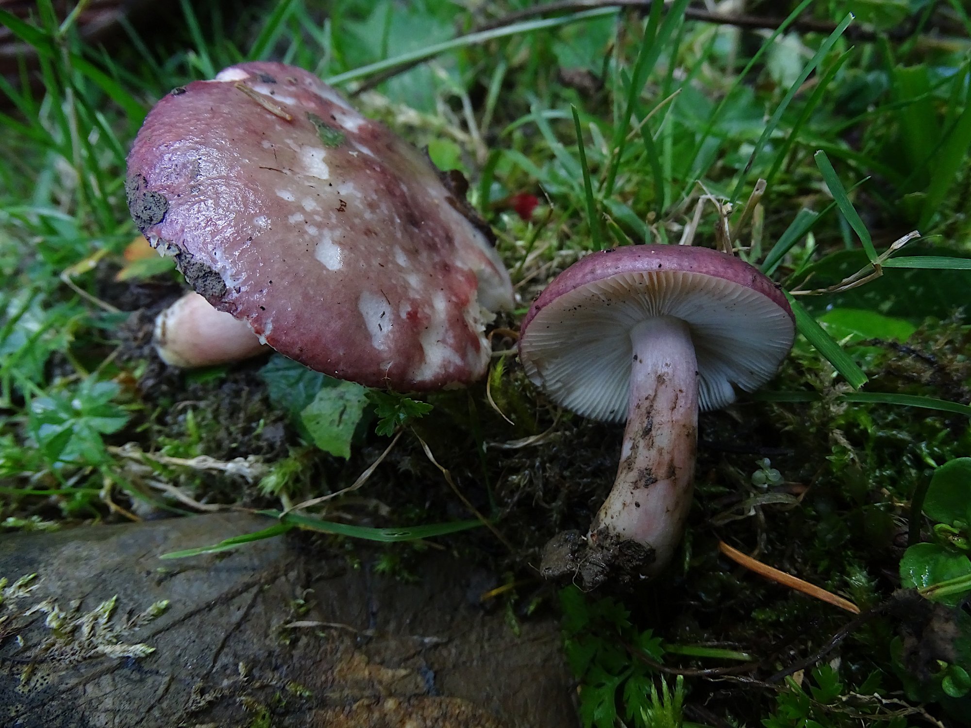 Celle-ci m'est devenue très familière : Russula queletii, à odeur caractéristique, chapeau et pied dans des tons rose-violacé.