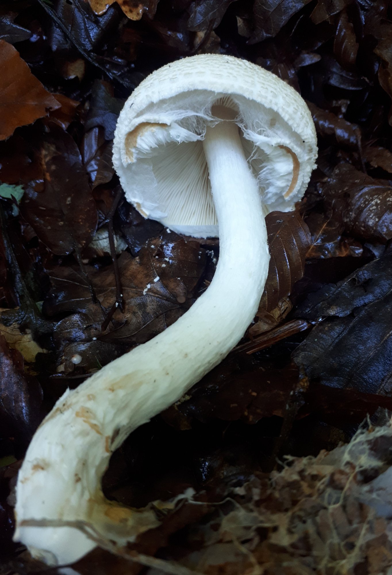Je suis temporairement démuni de mon GEPR parti chez le relieur pour raison de maltraitance. Je n'ai pas eu le temps de déterminer cette Lépiote récoltée dimanche au bord d'une piste forestière sous des fougères.
