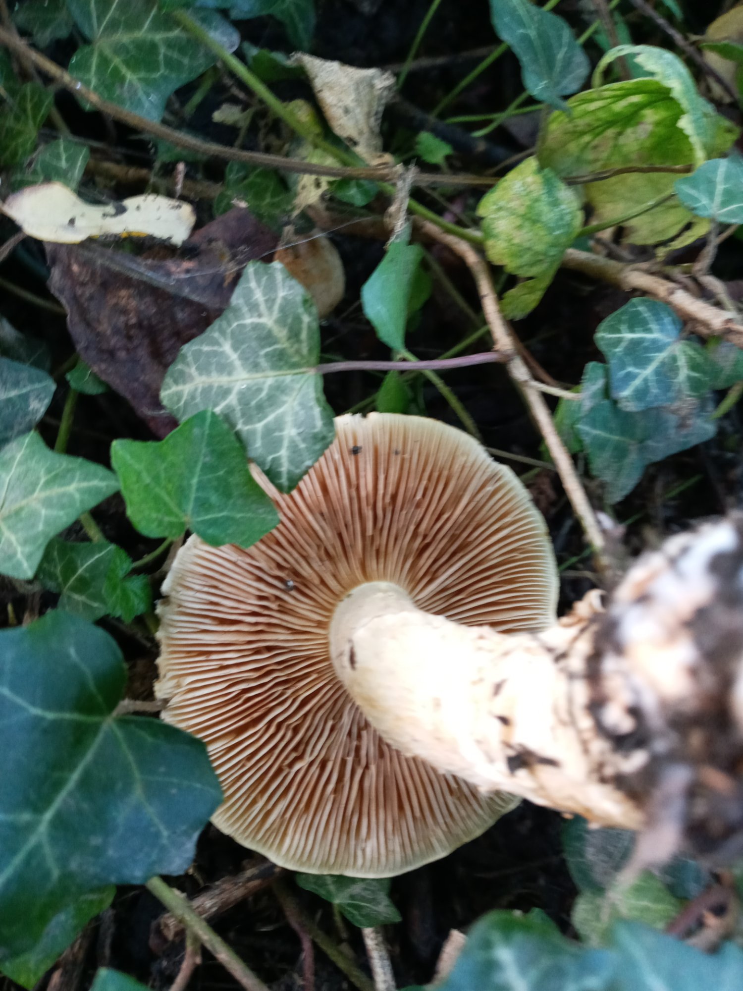Apparemment, un genre difficile mais les traces annulaires sur le pied et la couleur un peu rosée du chapeau me font penser à un candidat possible qui devrait avoir une odeur forte de rave et être amer. A vérifier, il n'y a aucun risque à le goûter et recracher ensuite. Une coupe de tout le champignon incluant le pied serait souhaitable.