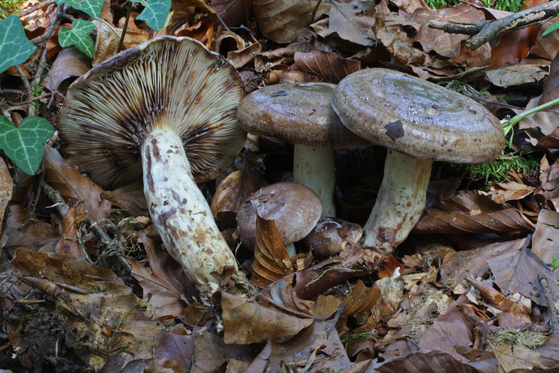 Entre luridus et violascens,la différence principale est d'ordre microscopique: pigment des hyphes de l'épicutis de nature intracellulaire à granules brunes, condensé dans les vacuoles pour luridus alors que pour violascens le pigment est de nature extracellulaire sous la forme d'incrustations(granuleuses ou à plaques) brun sombre recouvrant la paroi des hyphes.Quant à uvidus,son habitat est différent (zones humides avec bouleaux et saules, mélangés éventuellement à des conifères) ,son chapeau est très peu ou pas zoné et son lait vire lentement sur la chair et les lames à un lilacin/violet beaucoup moins saturé,profond et contrastant que celui de luridus et violascens.