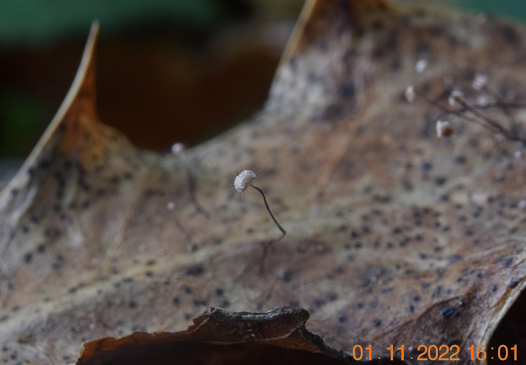 Alain Charret en a trouvé aux JMHA, j'en ai fait une photo. Il m'a précisé qu'il n'est pas si difficile que ça à découvrir ; Il suffit de bien dégager la litière de vieilles feuilles, souvent tout en dessous, là où elles sont les plus sombres. J'ai mis cela en application sous les houx que je trouve chez moi et bingo, ils y sont en nombre, juste des petits points blancs comme des têtes d'épingle.