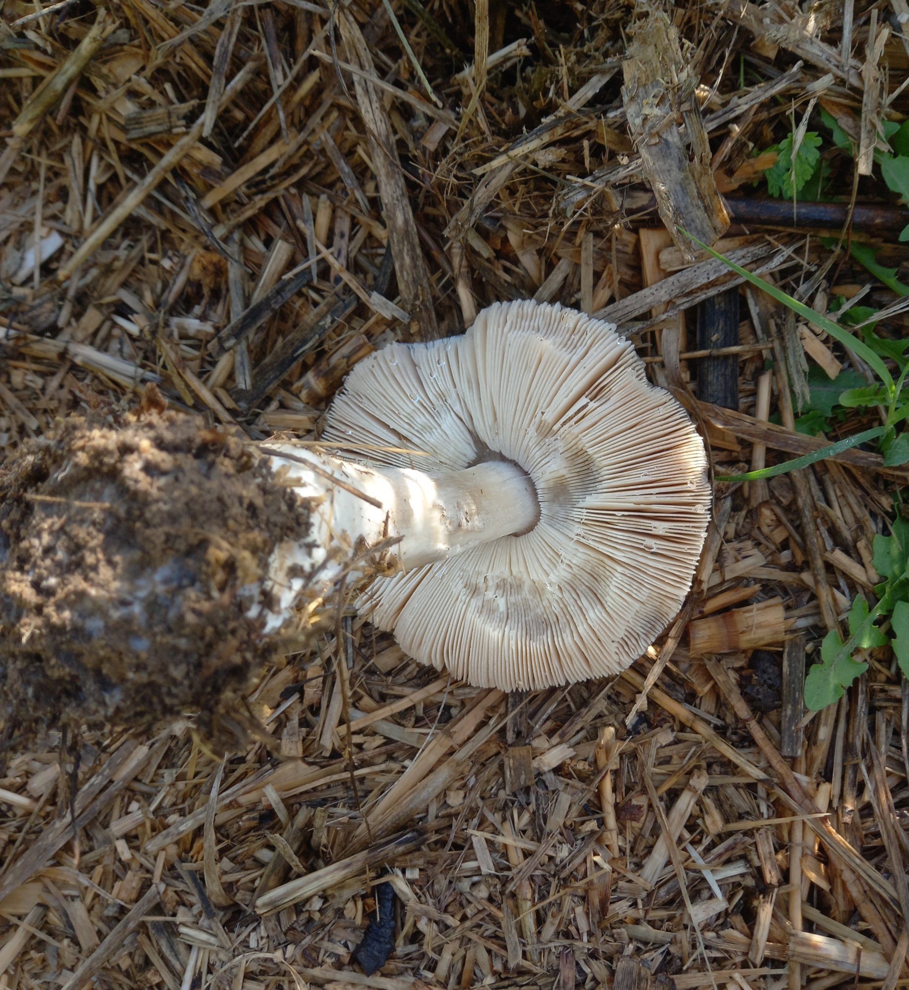 L'habitat ne permet guère de trancher : il peut soit indiquer volvaire (digue herbue, sol enrichi), soit indiquer plutée (débris de bois). Alors oui, il faudrait s'assurer de la présence d'une volve avant de conclure. Attention, elle est fragile, bien passer le couteau en dessous du pied et faire levier pour l'extraire sans le casser.