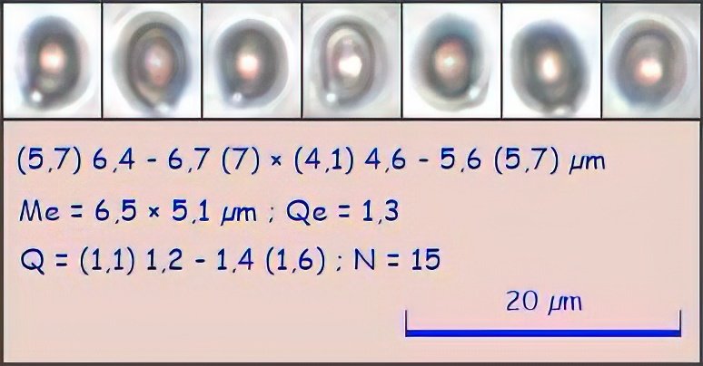 J'écris "si je mesure bien" car il y a la spore et un tracé autour : je mesure à partir du contour autour de la spore ... est-ce correct ?