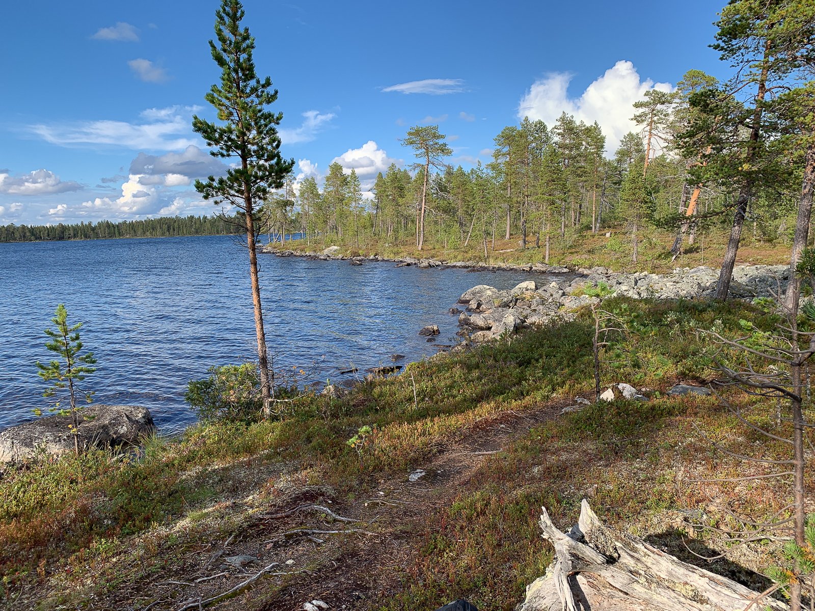 Mince pour le coup, je ne peux affirmer qu'il n'y avait aucun feuillu à moins de 20m. Il y a un lac près de la zone où je l'ai vu. J'ai retrouvé une autre photo du lieu (le champignon était près du tronc mort sur la droite), je pensais qu'il y avait des bouleaux en berge mais je n'en voit pas. Bon en tout cas, pas de certitude à 100% qu'il n'y a absolument aucun feuillu à moins de 20m :(