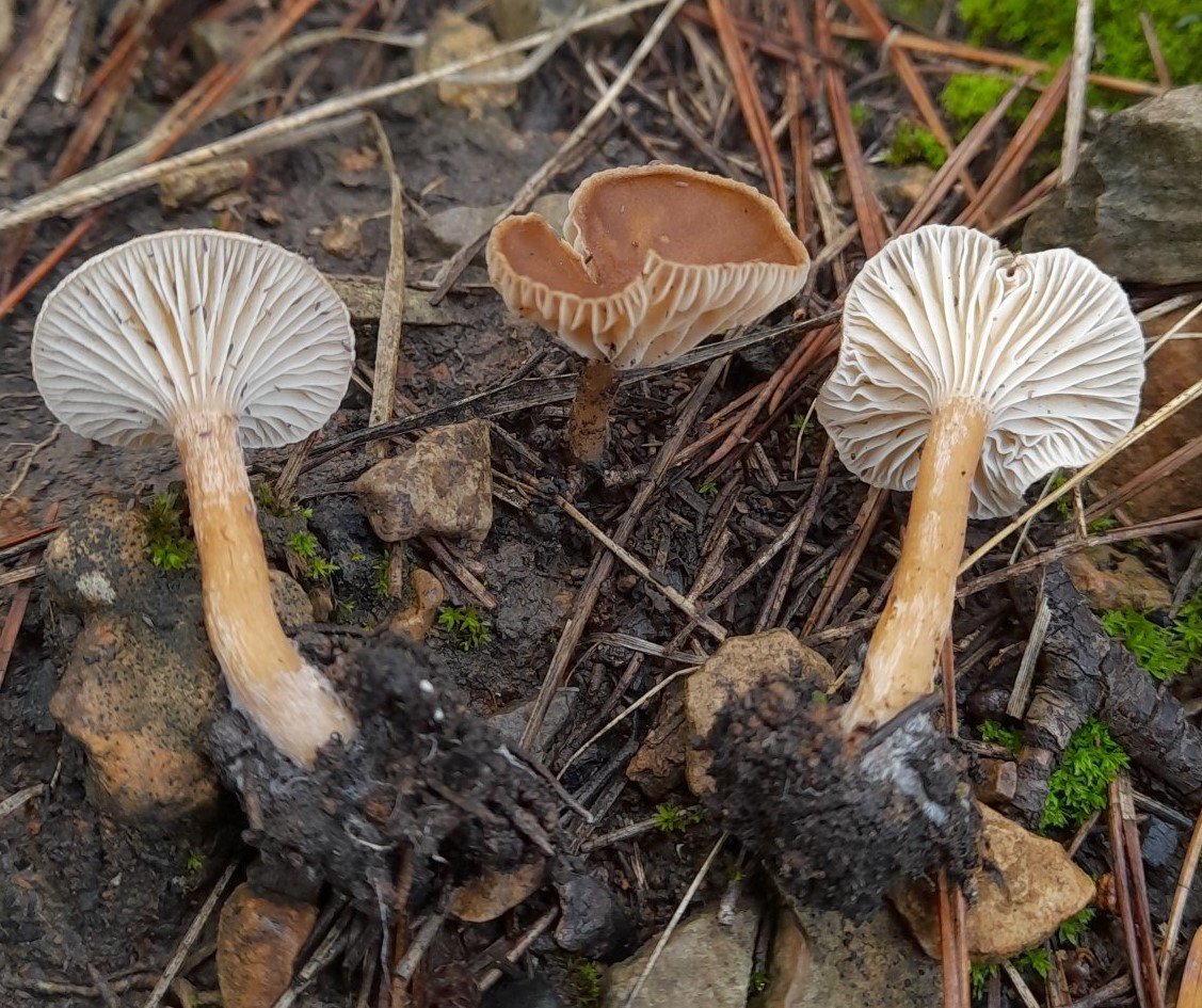 J'ai découvert ce petit champignon il y a quelques semaines. Il poussait à quelques mètre de Pin d'Alep, au milieu de leurs aiguilles. Je pensais qu'il s'agissait d'un jeune de part sa petite taille d'à peine plus d'1cm de haut, mais en revenant une petite semaine après, il n'avais pris que quelques millimètres. J'ai vu d'autres individus semblables à celui-ci aux alentours et certains avaient le chapeau plus sombre. J'ai bien conscience que je manque cruellement d'informations mais peut-on espérer l'identifier ? Je pense à un Clitocybe mais je suis incapable d'aller plus loin.
