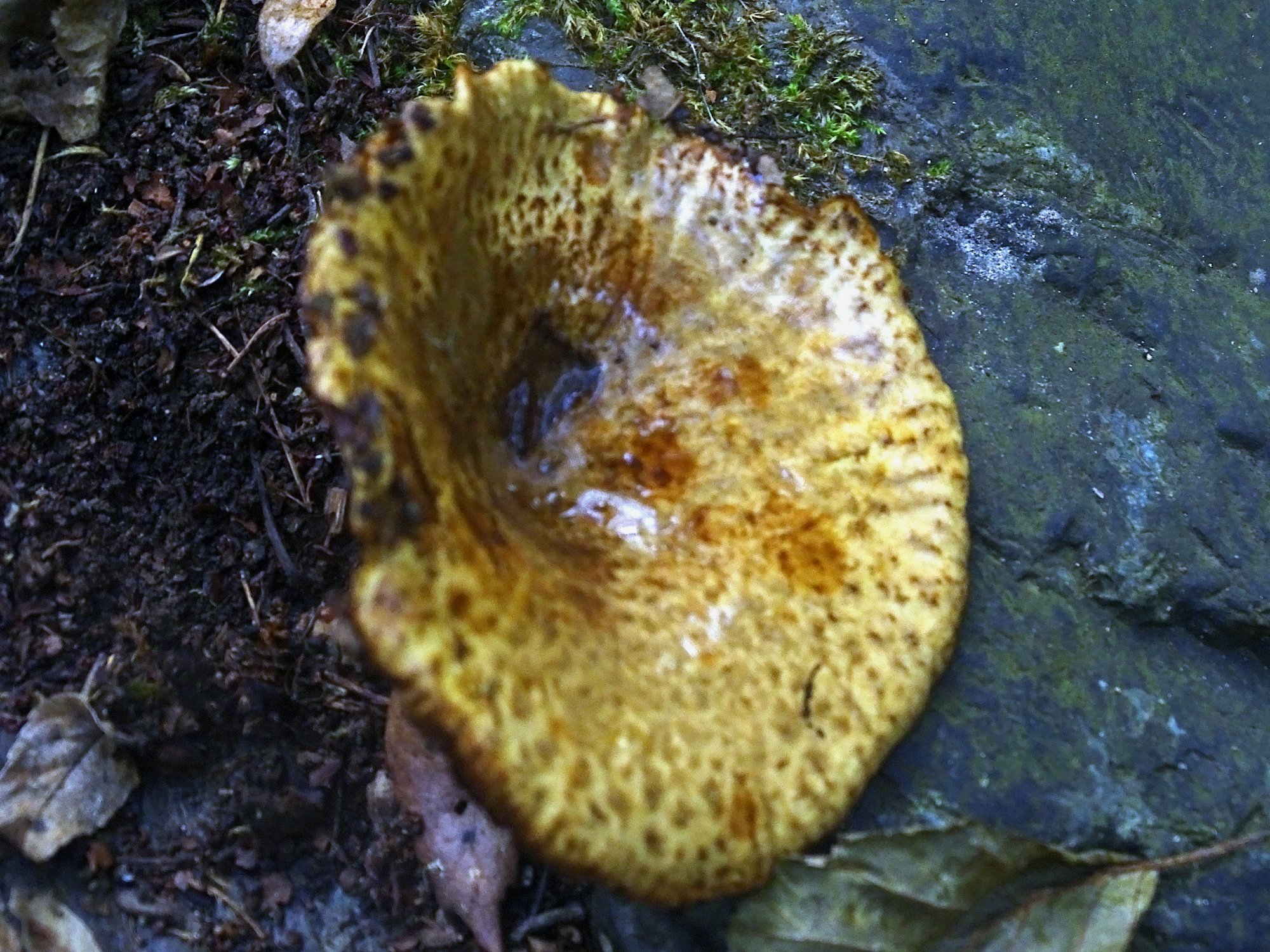 C'est vrai que je n'avais strictement aucune idée, ma recherche n'a pas été très scientifique, j'ai feuilleté le GEPR et rien trouvé, puis à tout hasard j'ai tenté Google Lens et comme souvent les résultats étaient plus aberrants les uns que les autres : Polyporus squamosus, des sclérodermes, des bolets, tout ce qui pouvait vaguement avoir la même couleur et des taches... et puis là dedans il y a sans doute eu un paxille, j'ai suivi cette piste et aperçu (je ne saurais retrouver où) la photo d'une espèce au chapeau similaire et à lames jaunâtres. Ensuite enchaînement logique : MycoDB > vient sous aulnes > + ton indication "rives d'un torrent corse" (je les connais bien) > d'où ma question.