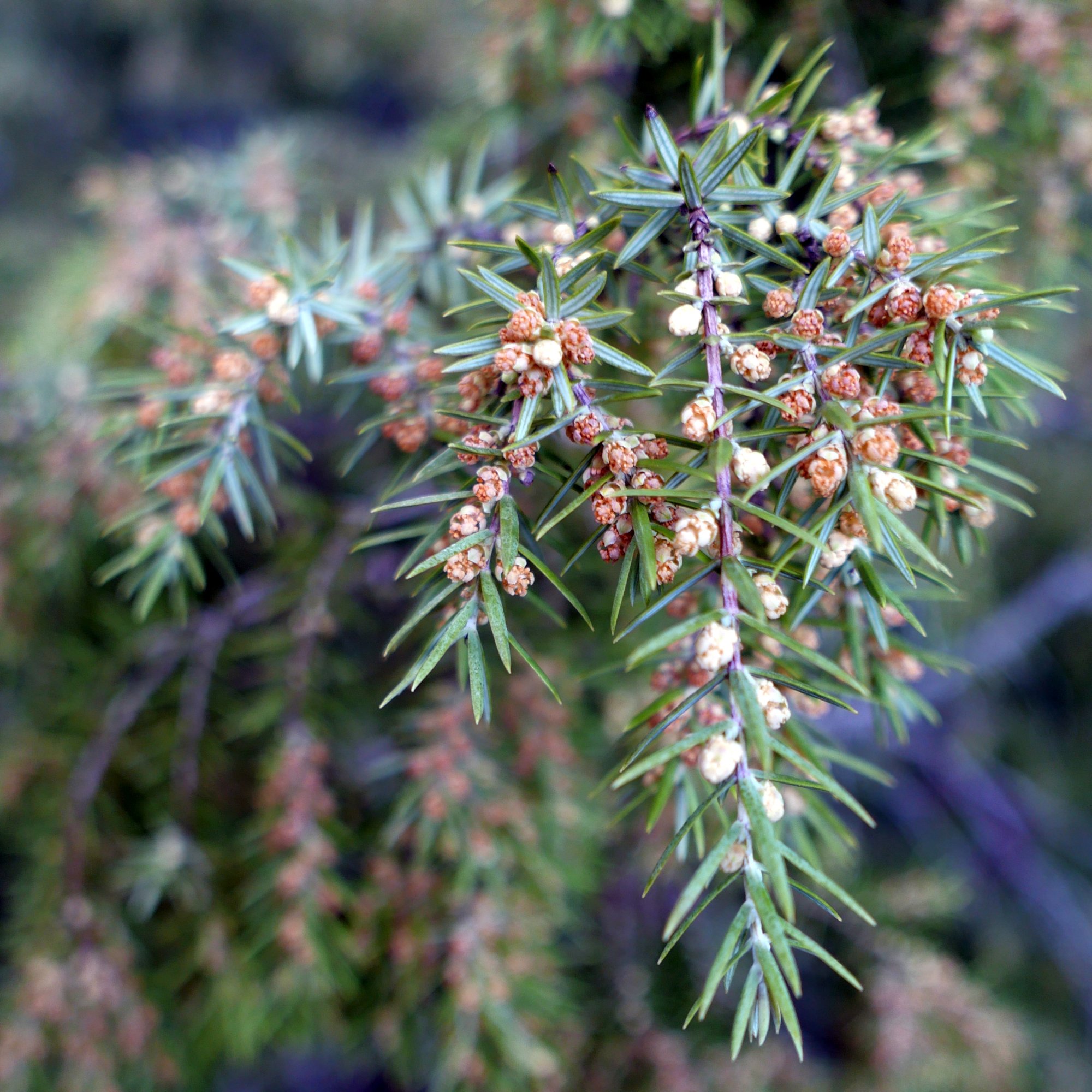 Juniperus oxycedrus, habituée des garrigues et caractérisée par les deux lignes blanches de ses feuilles.