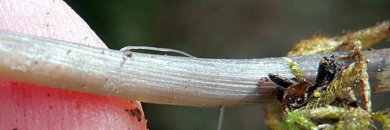 Non seulement c'est pas évident mais sans voir le pied c'est assez proche de la devinette, même si beaucoup d'indices ont été donnés. Sur place, il était assez clair qu'il s'agissait d'une mycène mais honnêtement je ne savais pas trop laquelle. C'est alors que j'ai fait ce que nous déconseillons à tous les nouveaux arrivants : j'ai photographié des doigts :