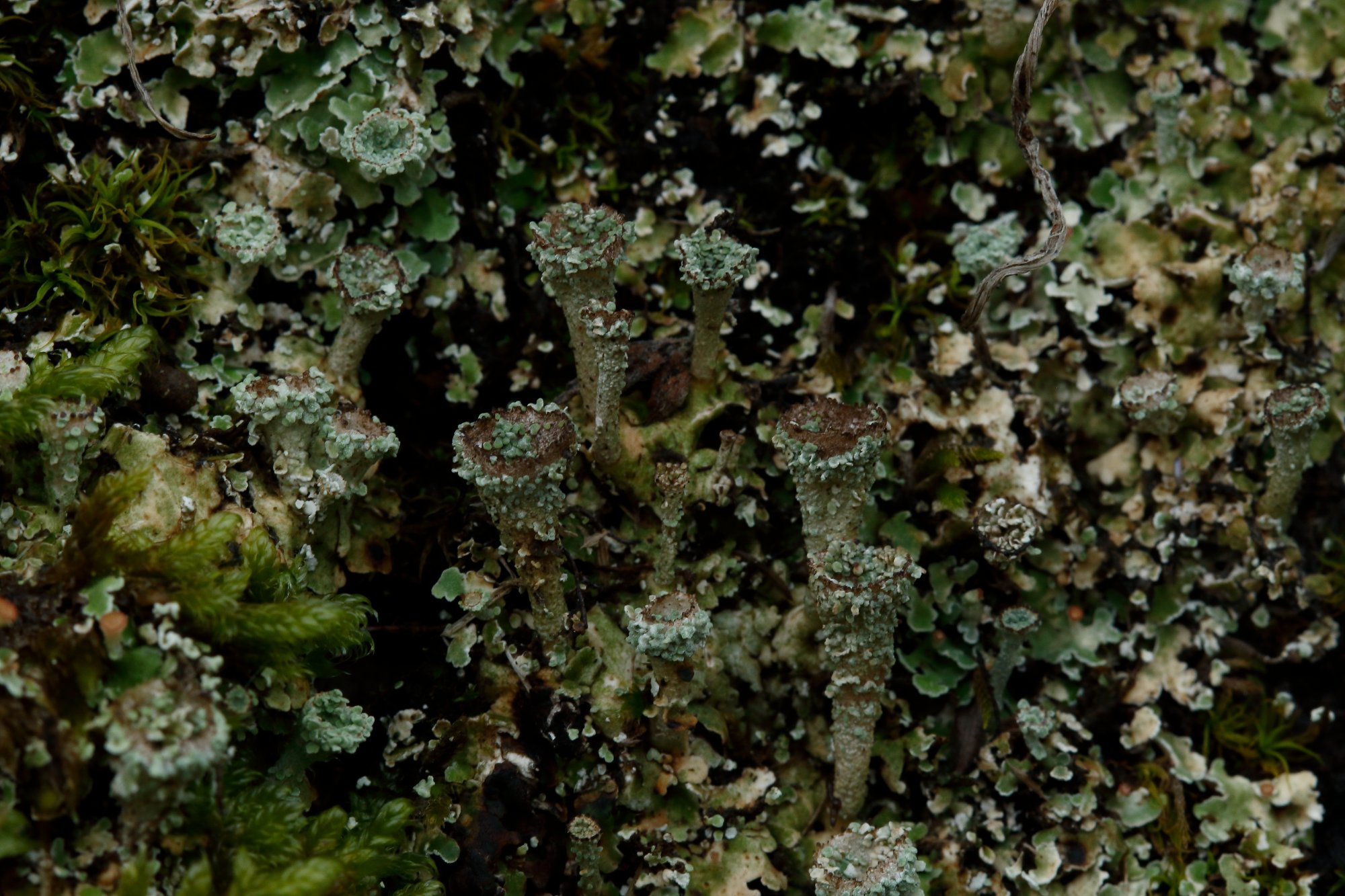 Edit: en regardant sur afl pocillum, il y a dans "Remarques : Cladonia pyxidata a, en général, de nombreux scyphes avec l’intérieur de la coupe non sorédié mais cortiqué lui donnant une couleur brune c'est le cas ici, non?